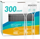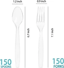 Heavy Duty Plastic Silverware: These are quite heavy duty plastic forks spoons as disposable utensils go. Their superior construction and design make them reliably strong. They won’t break easily under the strain of heavy food such as chicken and steak. Easy Cleanup: Disposable spoons and forks always give you the ability to avoid washing dishes. Clear disposable utensils can be simply thrown away after use for great convenience. With this cutlery set, you’ll get a quicker and easier cleanup on dish duty after a big event. Suitable for Most Food: This disposable silverware feature a clear transparent design, which can be easily match any types of decor, perfect for home dinners, parties, picnics, restaurants and more big events, with all kinds of food items like appetizers, main courses or desserts. High Quality Material & Perfect Details: These plastic utensils are made of high quality clear heavy weight plastic, colorless and tasteless. Thanks to its smooth, rounded edges, these ergonomic plastic forks spoons provide a comfortable dining experience for everybody. Over-Valued Pack of 300: The package of this plastic silverware set includes 150pcs plastic forks, 150pcs plastic spoons, making the set great for large gatherings and events. Ensuring you with enough quantity to accommodate all. Bring Ease to Your Life with the high quality Plastic Cutlery Set! Our disposable utensils are both heavy weight and strong to bring you great convenience at home and outdoors. Not only they come in bulk at affordable price, but also the biggest benefit to owning this set is not having to wash the forks and spoons at the end of the day. Totally a lifesaver you can’t miss. Features: These disposable plastic silverware are made of durable plastics without easily breaking or cracking up Complete high quality plastic construction also ensures you great safety. No harm to human body at all Never worry about washing them since you only need throw them away after use. Cleaning up hasn’t been so easier Its ergonomic handle and smooth edges provide you with a pleasant dining experience. Clear color easily matches your decor The set contains a 100pcs disposable bulk clear plastic cutlery at the most adorable price, ensuring you have enough utensils to go around Specifications: Item Type: Disposable Silverware Material: Plastic Case quantity: 150 forks, 150 spoons Color: Clear Disposable: One-time Important tips: Not dishwasher! Do not put the disposable plastic utensils in the microwave! Recommended for single use!