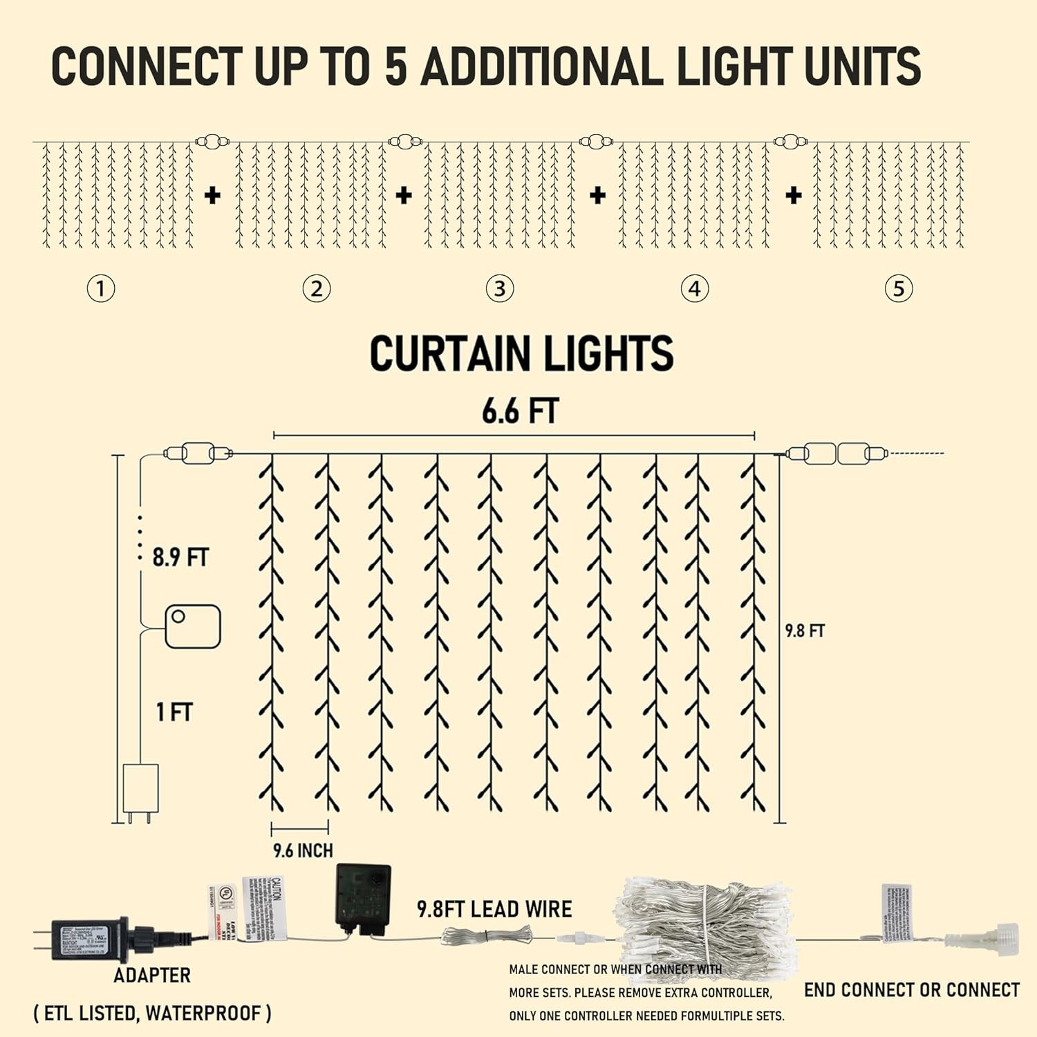 Free eBay listing template designed by dewiso.com Dazzle Bright 300 LED Curtain Lights, Plug in Fairy Curtain Lights for Bedroom, Christmas Hanging String Lights Outdoor for Window Backdrop Wall Wedding Patio Indoor Dorm Party Decor, Warm White FREE AND FAST SHIPPING! About this item 300 LED Curtain Lights: Our 9.8x6.6FT 300 LED curtain lights offer a stunning display of warm white fairy lights, featuring 10 light strands with 30 LED lights on each string. The size of the lights are perfect for covering large windows and walls, creating a breathtaking light show. The 9.8ft lead wire offers added support for outdoor use. Designed to be connectable, you can connect up to 5 sets of these string lights together to cover larger areas 8 Dazzling Lighting Modes: Our outdoor curtain lights come with 8 impressive modes to choose from: combination, in wave, sequential, slo glo, chasing/flash, slow fade, twinkle/flash, and steady on. These charming hanging twinkle lights can create a warm, cheerful, romantic, and relaxed atmosphere, making them ideal for various occasions. Whether you're celebrating a special event or simply want to enhance your home's ambiance, you can easily switch between modes to match the mood Safety and Durability: Our fairy string lights are equipped with a UL-listed 29V low-voltage plug, ensuring a safer experience. The soft light emitted by these fairy lights is safe to touch and won't overheat even with long use. The plastic-wrapped fairy string lights are more durable than thin copper ones. The light is easy to install, untie and secure the main strand first, then carefully untie each string light. You can use clips or cable ties to adjust the spacing between light strings Creating a Cozy Atmosphere: Transform your indoor and outdoor spaces with our warm and inviting Christmas lights. Our outdoor curtain lights are IP44 waterproof, making them resistant to rain and snow. These cozy lights add a festive glow to your decor, turning your room into a magical Christmas wonderland Versatile Home Decoration: The Christmas curtain lights are the ideal backdrop for creating unforgettable memories this holiday season. These lights are perfect for a variety of occasions, including Christmas, Ramadan, Halloween, weddings, birthday parties, proposals, and other holiday decorations. They are also suitable for everyday use, such as adorning bedroom tapestries, windows, gazebos, patios, backyards, trees, doors, classrooms, dorms and offices › Product We offer a 30-Day Return Policy on items which you are not completely satisfied with. You have the option for a full-refund or an exchange of the item. No returns are available on items shipped outside of the US . Shipping We offer Free Shipping to the US and ship within 2 business days of payment, usually sooner. We use UPS express shipping. That's why your products are usually delivered within 3 days . Contact We try our very best to make sure every customer is completely satisfied. If there's a problem , message us! We're happy to help. 24/7 live chat available.