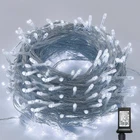 300 LED 98.5ft White Halloween String Lights 98.5ft Halloween Decorations string lights with 300 White individual LED bulbs. Perfect for indoor and outdoor decorations. Perfect for Halloween, Christmas, party, Valentine's Day, wedding, home, window, bathroom, festival, Holiday, shows, restaurant, hotel, commercial building, shopping center etc. High bright and luminous intensity, good heat dissipation, low light decay, and create romantic life for you. Adapter to the first LED light: 16.5ft. Total length(lights string and leading line): 115ft. Specifications: Light Color: White LED Count: 300 pcs Total Length (end to end): 115FT String lights: 98.5FT Waterproof Level: IP44 Voltage: 110V Output: 29V safe low voltage Power Supply: Adapter Powered Package Including: 1 x 300 LED White String Lights Notes: 1. Please note that the transformer is NOT waterproof so that please keep it away from water. 2. Please make sure the male or female connectors are connected correctly. If you can not turn on the whole light, it may caused by the false connection for the connectors, please disconnect them and change another direction to connect them again. 98.5ft Christmas Decorations string lights: With 300 Cool White individual LED bulbs. Each lights has end-to-end connection, you can connect up to 4 sets together to illuminate a wider range. 8 Lighting Functions: Our Halloween string lights have 8 lighting modes: combination, in waves, sequential, slogs, chasing/flash, slow fade, twinkle/flash, and steady on. Fit different occasions, moods, feelings, holidays, festivals, anniversaries, etc. Pressing the round button on the transformer to change the lighting modes. 29V low voltage string lights: Keep at a low temperature state after lighting up for hours, ensure and maximize the safety. Directly plug in and unplug it for power on and off. US standard outlet, voltage 110V. Adapter to the first LED light: 16.5ft. Total length(lights string and leading line): 115ft. Waterproof & Widely Use: The strong construction makes the string lights tough and Christmas, Halloween, Thanksgiving, wedding, party, home, bedroom, wall, garden or balcony decorations.