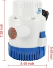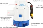 Product Description Features: This product is 100% brand new Heavy Duty, fully submersible electric pump Tough, efficient, long life motor Rustproof and corrosion resistant Stainless steel shaft High-impact durable plastic housing Quick release strainer for easy maintenance Extremely efficient, low current draw and offers high capacity output Water cooled long-life motors Ignition protection to protect the pump against high current Water/moisture tight seals Silent and vibrationless operation Anti-airlock protection Will not burn out when run dry Specification: 3,000 GPH Pumping Capability Voltage: 12V DC Flow capacity: 3,000 Gallons per hour (11325 Litres per hour) Current draw: Only 12 Amp Fuse Size: 15Amp Hose Outlet: 1-1/2" (40mm) Dimensions: Height 7.5" x Width 5.1" Applications Typically used in boat hulls / bilges Bait tanks Ponds, pools, spas Other applications where you have to remove water from Package includes: 1 x 12v 3000 GPH Bilge Pump