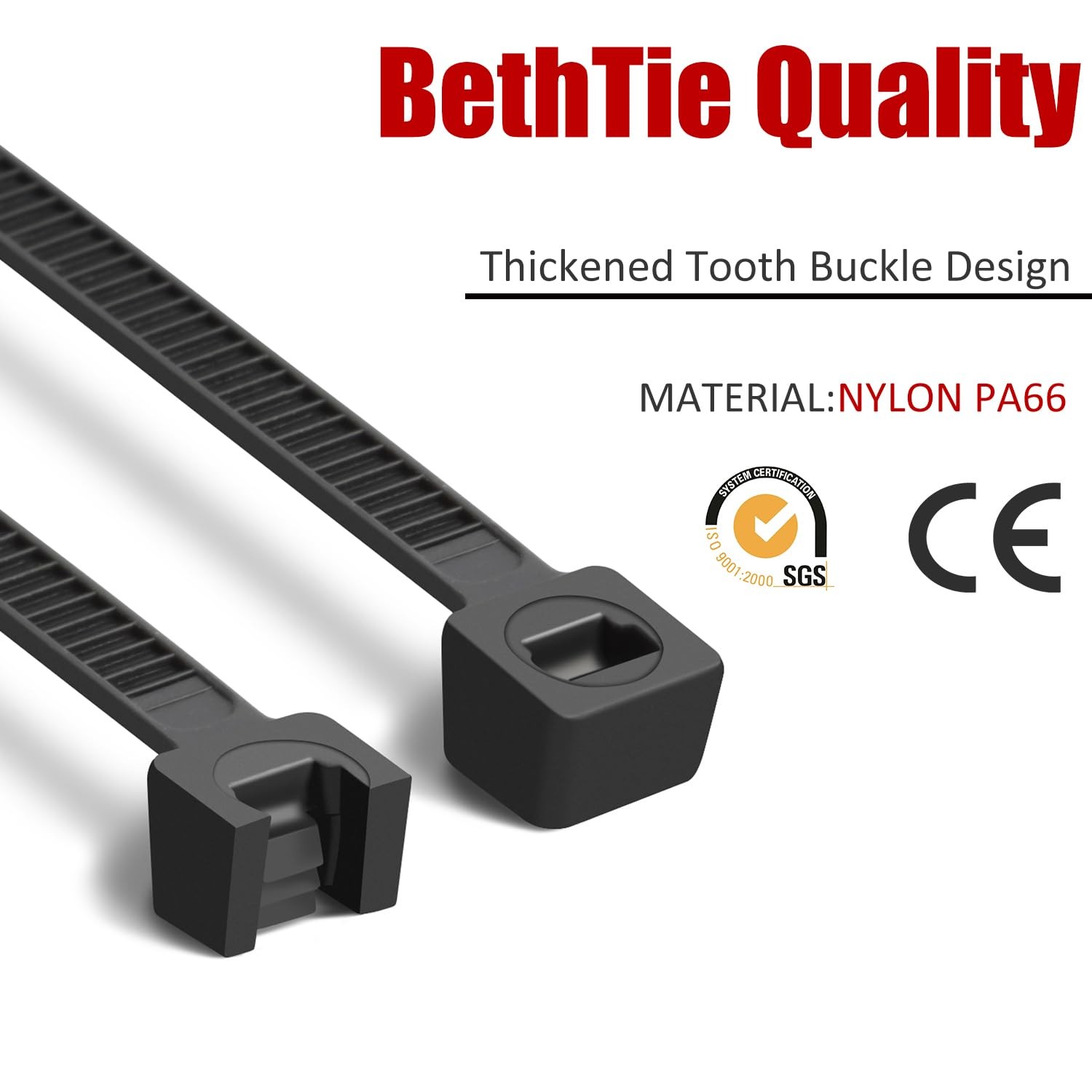 Zip Ties 6 inch Black Zip Ties 3000 Pack, Wire Ties with 40lb Tensile Strength, UV Resistant Cable Ties, Self-locking Plastic Ties for Indoor and Outdoor Use 【Details】 Dimensions: Quantity: 3000 PCS | Length: 6" | Width : 0.14" | Max Dia: 1.5" |Tensile Strength: 40lbs | With zip ties, you don't have to worry about The quality of the zip ties. 【High-quality material】Industrial-strength nylon 66 fireproof material is used, which can be used in the environment of -35℃ to 85℃, Features strong load ability, anti-aging, anti-acid, anti-corrosion and durability. 【Easy-using】You only arrange the things to be bundled, and then bend one side of the small saw blade inward, pass the arrow through the other part of the button, and easily pull it. 【Wide Application】Zip Ties is perfect for tying cables, plants, packages, etc.It is a good helper for family, office, garden, workshop and other places. 【After Sales】If You have any dissatisfaction with the product, We offer a 30-day /return policy. What Beth Tie provide is not only good products, but also quality services. Try it, completely risk-free! Hurry up and click to add to the shopping cart!