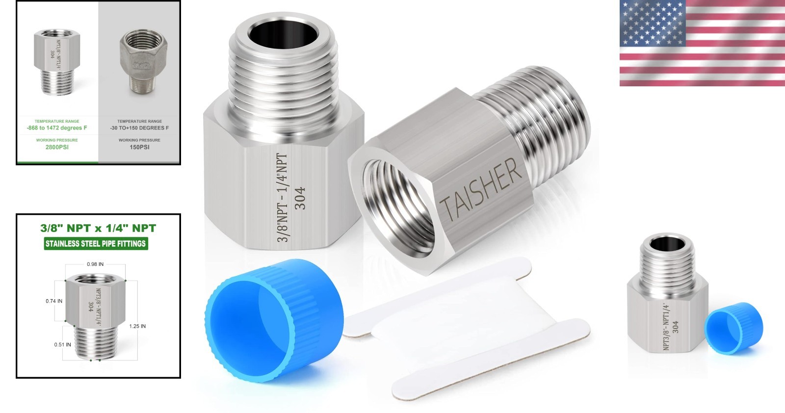 304 Stainless Steel Reducer Adapter 1/4" Male x 3/8" Female - 2PC Set ‹ › ‹ › ‹ › ‹ › ‹ › ‹ › ‹ › ‹ › ‹ › 304 Stainless Steel Reducer Adapter 1/4" Male x 3/8" Female - 2PC Set Elevate your industrial connections with our Reducer Adapter. This essential tool is designed to provide a seamless transition between pipes and fittings with different end types, diameters, or materials. Product Features: Type: 1/4" Male NPT x 3/8" Female NPT Adapter with protective case. Material: Crafted from high-strength 304 stainless steel, ensuring exceptional durability and corrosion resistance. Working Temperature: Suitable for extreme temperature ranges from -80 to 1472 degrees F (-62 to 800 degrees C). Maximum Pressure: Capable of withstanding a maximum working pressure of up to 2800 PSI. Quality Assurance: The forged stainless steel provides superior strength compared to traditional casting methods. Why Choose Our Reducer Adapter? In the world of industrial plumbing, precision and reliability are paramount. Our Reducer Adapter not only offers the perfect fit for connecting different pipe types but also boasts the strength and resilience needed to perform under pressure. The 304 stainless steel construction ensures longevity and resistance to corrosive environments, making it an invaluable addition to your toolkit. Don’t compromise on quality—opt for our Reducer Adapter and ensure your connections are solid and trustworthy. Experience the blend of performance and durability that sets our product apart. Order your 2PC set today! Shipping Free & Fast Shipping - We offer free shipping to most of the USA with a normal delivery time of 3-7 days. However, due to the current situation, additional delivery time (up to 3 weeks) may be required for some items. Alternative Carriers - We may use alternative carriers (e.g. USPS, FedEx, UPS, etc.) to ensure your package arrives safely and on time. Due to the use of multiple carriers, we are unable to provide a tracking number automatically. Handling Time - Orders are processed and shipped within 1-2 business days of receiving cleared payment. Shipping Restrictions - Shipping to Alaska, Hawaii, Puerto Rico, Guam, and other US territories may incur shipping charges or delivery restrictions. Please contact us before ordering, or your order can be refunded/cancelled. State Restrictions - There may be restrictions based on your state of purchase. For example, certain items may not be shipped to California due to state regulations. Contact for Tracking Updates - If you require tracking updates or have any concerns about the delivery of your order, please feel free to contact us, and we will be happy to assist you. Return 30-Day Hassle-Free Returns - We want you to be completely satisfied with your purchase. If you are not, you can return the item within 30 days of receiving it for a full refund or exchange. Easy Return Process - To start a return, simply contact us and we will provide you with a prepaid return shipping label and detailed instructions. Restocking Fee - There are no restocking fees for returns. However, the buyer is responsible for return shipping costs if the return is not due to a seller's error. Refund Processing Time - Refunds will be processed within 5 business days of receiving the returned item in its condition. Payment We accept all major credit cards, PayPal, and Apple Pay for your convenience. Your payment information is secure and encrypted to ensure a safe and seamless transaction. Please complete your payment within 3 days of purchase to avoid any delays in shipping. Feedback Your feedback is extremely important to us. We strive to provide the best products and customer service possible. If you are satisfied with your purchase, please take a moment to leave us a positive review. If you have any concerns or issues with your order, please contact us before leaving negative feedback. We are committed to resolving any problems and ensuring your satisfaction. Contact Us If you have any questions or concerns, please feel free to out to our customer support team. You can contact us through the eBay messaging system. We are available Monday to Friday, 9:00 am to 5:00 pm EST, and we will do our best to respond to your inquiry within 24 hours. Buy it now and enjoy a pleasant shopping experience! MPN: Stainless_Steel_Fitting_Adapter Unit Quantity: 0.11 Country of Origin: Stainless Steel Fitting Adapter Unit Type: kg