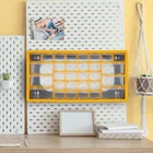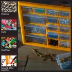 About This Product The 30-Drawer Storage Cabinet by Stalwart is an excellent organization solution for your garage, home or office. Constructed from strong and durable polypropylene, these garage storage bins are made to last. This screw organizer can be used table-top on a desk or workbench or wall-mounted thanks to the built-in keyholes on the back of the frame. With 6 large and 24 small see-through compartments, this craft organizer can easily store a variety of small parts, including hardware, office supplies, fishing tackle, beads, jewelry making supplies and more - you can even use it as toy storage for building blocks. Stalwart, for craft organizers and storage solutions that are SMART, STRONG and SECURE. IMPORTANT: Stalwart is committed to providing the consumer with the absolute best price and value on all of our products. NOTE: This is an exclusive product of Stalwart and ONLY Storage Bins with Drawers by Stalwart are GUARANTEED to be genuine. Avoid buying counterfeit products and transacting with unauthorized sellers. Stalwart is a registered trademark protected by Trademark law and will be vigorously defended. Highlights 30-drawer garage organizer - keep any area neat and tidy with the Stalwart plastic storage drawers organizer, use these bins as a hardware organizer for nuts and bolts, for bead storage, as a craft storage cabinet or even for classroom organization Quality construction - this small parts storage organizer is made to last, constructed from durable polypropylene that is difficult to damage or break, the clear storage drawers allow you to see their contents and feature finger pulls for easy opening Tabletop or wall mountable - the craft storage cabinet is portable and can be placed on any desk, table or work surface or use the keyholes on the back of the sturdy frame for convenient wall mounting in a closet, classroom, workshop or shed Versatile use - with 6 large and 24 small storage drawers, this craft storage organizer is ideal for organizing a variety of small items from fishing tackle, office supplies or hardware like nuts, screws and bolts, to art supplies, beads or jewelry Product details - material: polypropylene, dimensions: 19. in. L x 6.2 in. W x 9.7 in. H, small drawers: 2. in. x 5.2 in. W x 1 in. H, large drawers: 4 in. L x 5 in. W x 2 in. H, 30 total drawers; 6 large and 24 Color: yellow and black Dimensions Product Depth (in.): 19.6 in Product Height (in.): 9.75 in Product Width (in.): 6.25 in Color Family: Multi-Colored Color/Finish: Multi-Colored Features: Stackable, Wall Mountable Material; Polypropylene Number of compartments: 30 Pack Size: 1 Product Weight (lb.): 5 lb Tool Storage Product Type: Small Parts Organizer Tools Product Type: Tool Storage