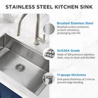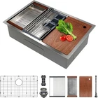 30 Inch Undermount Kitchen Sink Superior Drain Kitchen Sinks 11 Gauge (3mm) Stainless Steel, Single Bowl Integrated Ledge Multifunctional Workstation Set - Item Description About this item KITCHEN SINK SETS with SINGLE TRACK: Designed with an integrated single-tier rail for sliding built-in custom accessories, the Workstation Sink provides you with a versatile, efficient space for all your kitchen tasks. The package includes deep kitchen sink, cutting board, colander, stretchable roll-up drying rack, bottom rinse grid, strainer and more. There are two styles of drain baskets. The standard style slides more easily during use, while the upgraded style is easier to handle. You will get one of them randomly. FASTER DRAINING DESIGN: The undermount kitchen sink has X-shaped drain grooves on the bottom that slope gently towards the drain for quick drainage and prevent water from pooling, keeping the work area clean. The sink also has a bottom grid that shields the deep sink surface from scratches and allows water to flow beneath for optimal drainage when rinsing items. 11 Gauge THICKER MATERIAL FOR EXTRA DURABILITY: The single bowl kitchen sink is made of SUS304 premium stainless steel that is easy to clean, and durable with resistance to stains, scratches, and corrosion. The thickness of the sink edge is 11 gauge (3 mm) ensuring that the edges will not warp. The stainless steel sink is ideal for most kitchen appliances. PRACTICAL PERFORMANCE: R10 radius rounded corners for easy wiping of sinks; Anti-condensation coating reduces condensation and prevents moisture buildup; Thick silicone pads reduce noise and sound; The openable lid at the top of the pipe stops food debris from clogging the pipe opening. For everyday meal preparation or hosting a great party, this kitchen sink is a functional, intelligent kitchen must-have. 30 INCH WORKSTATION KITCHEN SINK: 30" (wide) x 19" (length) x 10" (depth). The drop-in kitchen sink's exterior design ensures a modern and elegant aesthetic while maximizing the available space to accommodate large dishes pots and pans. › See more product details *Our dish drying rack is extendable. It can be shortened to a minimum of 13 inches and extended up to 23 inches, giving you flexibility based on your available space. *Choose a sink size based on the available space in your kitchen or bathroom. We recommend that the sink’s length and width be 2-4 inches smaller than your cabinet. *The sink features an 11-gauge stainless steel panel, approximately 3mm thick, providing outstanding durability. The basin thickness is 18-gauge (about 1mm), balancing strength and flexibility. *Yes, this sink has a 3.5-inch drain opening, making it compatible with most standard garbage disposals. Payment We accept payment only through PAYPAL Shipping We ship products worldwide through standard express courier service, it will reach within 7 to 10 days to abroad buyers, we ship the product after recieved clear payment and give full information about shipment to the buyer Return We accept product return within 7 to 21 days from delivery date but product should be in original position and not in damaged condition,the return shipping charges will be buyer responsibility