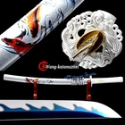 30''Koi/Silver Fish Wakizashi 1095 Steel Blue Blade Japanese Samurai Sharp Sword Product Parameter: Name: 年 年 有 鱼 Item number: TYQ35 Blade material: T1095 high carbon steel Overall Length: 78cm/30.7'' Blade Length: 50cm/19.68'' Handle Length: 20 cm/7.87'' Blade Width: 3.2 cm/1.26'' Thickness: 0.7cm/0.28'' Bo-hi(blood groove): No, better hardness Blade Hardness(HRC): 56 Tsuba(Hand Guard): Alloy, Silver fish design Tang(nakago): Full tang Hamon: Yes, the blue blade and the white hamon are like waves on the sea . Samegawa: White rayskin, Anti-slip function Saya (scabbard): Shiny lacquered wood saya with delicate Koi pattarn , Craft: Fully hand forged, Hand traditional polished , quenching, electroplate color , etc. Other fittings: Brass habaki & seppa + Alloy fuchi & kashira & menuki + Japanese synthetic silk sageo/ito Please Note: Payment Delivery Details Contact Us . Please Note: International Buyers – Please Note: a) Import duties, taxes and charges are not included in the item price or shipping charges. These charges are the buyer’s responsibility. b) Please check with your country’s customs office to determine what these additional costs will be prior to bidding/buying. Payment All payments are expected within 7 days after the last winning auction is closed. All items from unpaid auctions will be forfeited and an Unpaid Item claim will be filed against your account on eBay. Delivery Details We only ship to the confirmed address provided by Ebay. Before you pay, please make sure your address in Ebay matches the address you would like us to ship to. Buyers' Information: We strive our best to provide you the most reliable, affordable way of shipping service. However, sometimes international delivery is highly depended on the courier company and local customs/duties. If you do not receive your item on time, please contact us immediately for further assistance. Please note that we do not ship on weekends, or national holidays. If you make a payment by eCheck, it may take longer since it has to clear your bank first before the order is processed. We recommend our buyer to combine shipping. Contact Us If there is any problem, just contact us. Please contact with us before you leave feedback. We will try our best to solve the problem for you, thank you. Customer satisfaction is always the most important for us.Sometimes,you may not get our reply immediately due to the time difference among each country. However, please be assured that we’ll strive to reply you as soon as possible once we got your messages. Wish you have a very pleasant buying experience with us. .