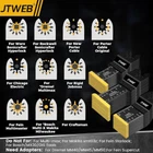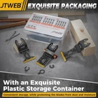 JTWEB 30PCS Titanium Oscillating Saw Blades Metal Cutting, Multitool Blades Oscillating Tool Blade Metal Nails, Multi Tool Blades Kits Wood and Metal Plastic for Milwaukee Bosch Rockwell Ryobi Titanium Coating: The titanium oscillating multitool blades are plated with titanium carbide, which increases the hardness of the blade itself by more than 50% and extends 2x longer service life than the ordinary blade 3 Types 30 PCS: The oscillating tool blades for metal includes three models: 10 pcs 1-3/8", 10 pcs 1-3/4", 10 pcs Extra-Long 1-3/4" titanium bi metal oscillating saw blades. More models of oscilatory tool blades to meet your various cutting needs Scope of Application: Titanium plated oscillating tool metal cutting blade is more wear-resistant in soft metals, aluminum, nails, and staples to cutting than ordinary saw blades. NOTE: Can't cut hard steel, such as steel nails or steel bolts 3 PCS Extra Adapters: The universal interface system and three extra adapters, for more numerous oscillating tools than competitors. Such as for Milwaukee, Bosch, Rockwell, Fein Multimaster, etc. Warm Reminder: It's not recommended to use this set for the tools of the starlock and starlock plus interface system, and MM30, MM40, MM50