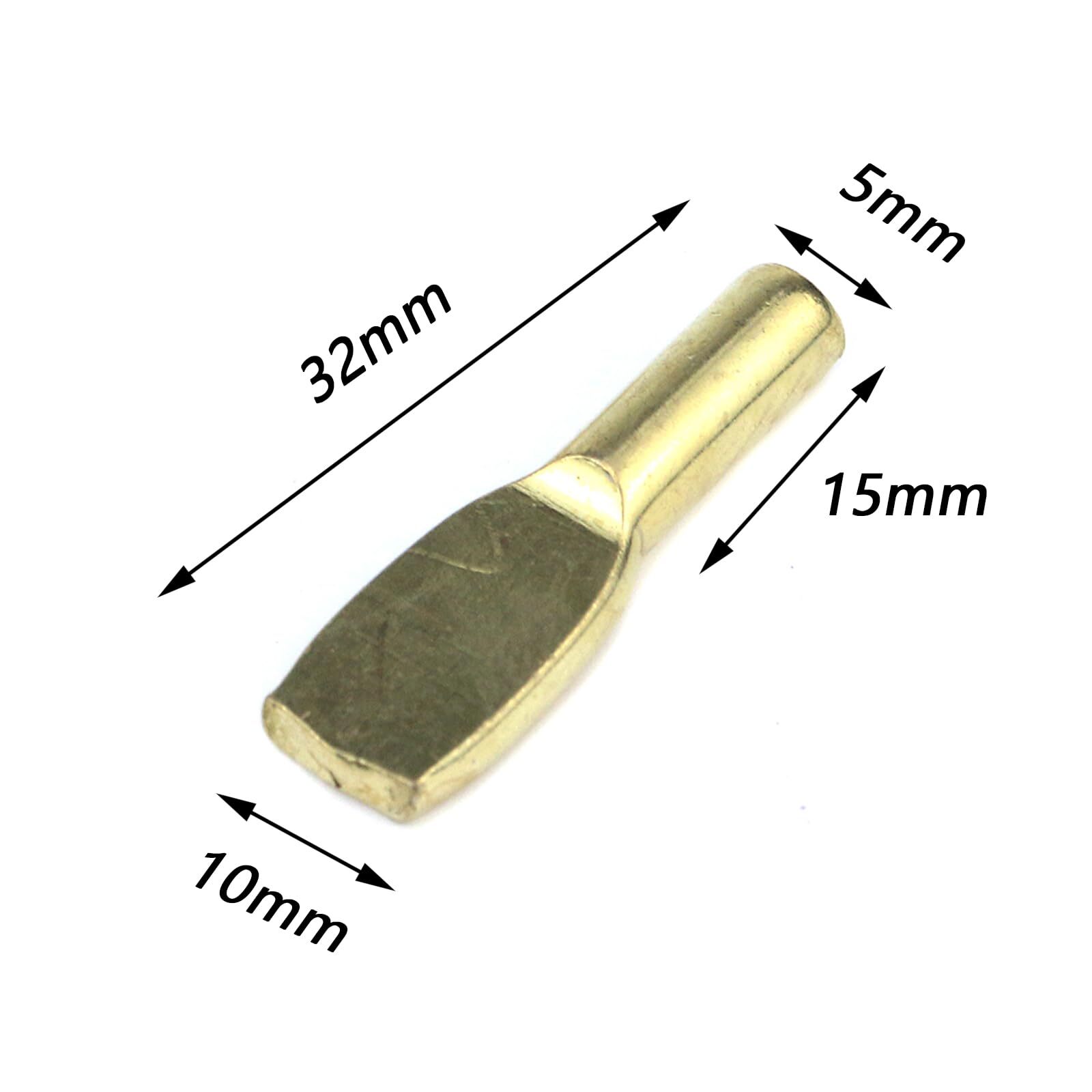 These golden shelf pins are a game-changer for organizing cabinets and shelves! The 5mm size fits perfectly, and the smooth iron construction ensures durability with no annoying burrs. Love that they come in a pack of 30—plenty for multiple projects. The gold finish adds a sleek touch, making them both functional and stylish. Super easy to install, and they hold shelves securely without wobbling. Great value for the price—highly recommend for anyone upgrading their storage!