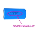 Product Parameters: Battery Model: ER26500 Battery Voltage: 3. 6 V Battery capacity: 85 00mAh Size: 50 .5 mm * 26.2 mm Battery Nature:non-rechargeable Disposable Lithium Battery Package included: 30Pcs ER26500 Battery