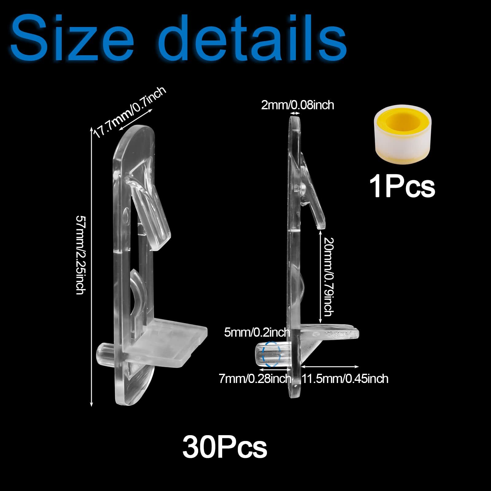 Features: * Thicken Plastic Material These shelf pegs are made of transparent thicken plastic, invisible looking and good bearing capacity, can be matched with any home improvement style. Durable and practical. * Self-locking Design According to the principle of triangular mechanics, our shelf support pin adopts self-locking design, which can provide strong grip and supporting effects without any screws. Easy for installing while ensuring nice holding capacity. * Size Information -- Suitable shelf thickness: 13/16" -- Outer Diameter of Peg (Measure from the ridge): 1/5" -- Inner Diameter of Peg (Measure from the dented part): 3/16" !! Please care: Because different pins fit different hole size, and after long-term use, the previously drilled holes will be enlarged. Please determine the size that fits the hole before replacing your old shelf pins * Easy Installation No use for any screws, the clear furniture shelf supporter are very easy to install by hand. Just push support pegs in the drilled hole, then you get a relaxing installation experience. Work on Different Shelfs Ideal for medicine cabinet, kitchen cabinet, furniture, wardrobe, closet, cupboard, book shelf, pantry shelving, etc. * Satisfying Customer Services We provide 48-days money-back and timely after-sale response, if you have any questions, please contact us. We will try our best to solve your issue as soon as possible. Welcome to , your satisfaction is always what we pursue. 【Thick Sturdy Plastic】:Made of high quality thicken plastic, invisible and durable. Meet your requirement for both good-looking and last-using. 【Self-locking Design】: Self-locking design, come with strong grip and easy to install; Stable triangular structure provides nice support, ensuring greater bearing capacity. 【For 20mm Shelf】: The shelf holders fit for 20mm/0.79inch thick board, and 5mm/0.2inch outer diameter of them. Please note that drilled hole should be slightly smaller(about 5mm) than its diameter. 【Warm installation tips:】:If your original hole is larger than 5mm, you can also use the tape we provided to wrap around the nail to increase the diameter of the partition pin.The thickness of the product itself is 2mm, and it is necessary to reserve 2mm space at both ends of the partition before installation. 【Wide Application】:No use for any screws, the clear furniture shelf supporter are very easy to install by hand.Just push support pegs in the drilled hole, then you get a relaxing installation experience.Ideal for medicine cabinet, kitchen cabinet, furniture, wardrobe, closet, cupboard, bookcase, pantry shelving, etc.