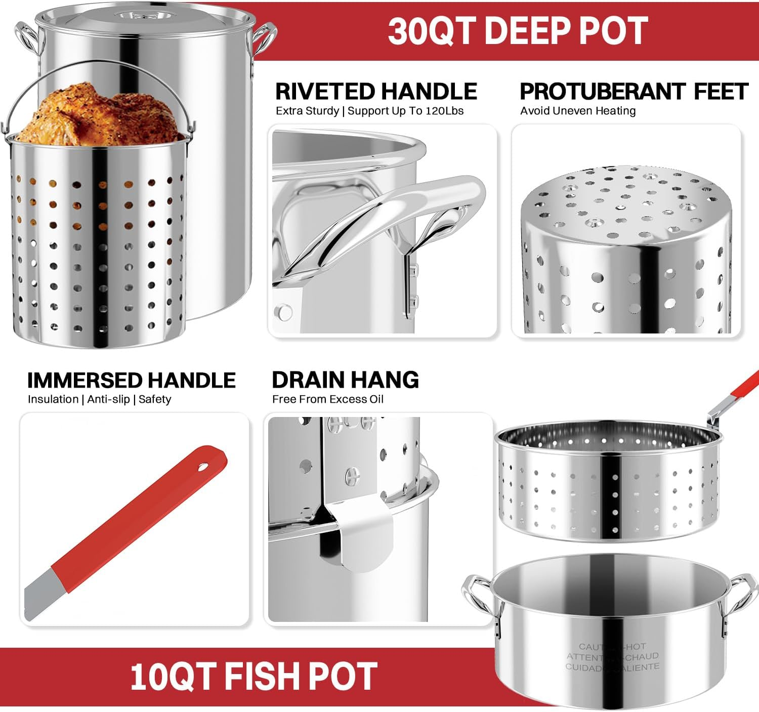 FOR YOU 30QT Stainless Steel Turkey Fryer | Outdoor Fryer | Cover & Skimmer Included | Seafood Boil Pot | 50,000BTU Propane Burner | Deep Fryer Pot with Basket | Crab, Seafood & Crawfish Boiler FEATURES ใ๐๐จ๐ฆ๐ง๐ฃ๐ฅ๐ข๐ข๐ ๐๐ข๐ฉ๐๐ฅใPipopa turkey fryer set comes with a dustproof cover. ใ๐ญ๐ฎ ๐๐ก๐๐ ๐ฆ๐๐๐ ๐ ๐๐ฅ ใPipopa Turkey Fryer Pot with Basket and Burner also comes with a 12-inch Skimmer. ใ๐ฆ๐ง๐๐๐ก๐๐๐ฆ๐ฆ ๐ฆ๐ง๐๐๐ ๐ฃ๐ข๐งใEffortlessly handle large-volume cooking with the spacious stainless steel 30-quart pot and generous 20-quart basket. The compact 10-quart stainless steel fish pot and matching stainless steel basket are perfect for creating small-portioned dishes with ease and efficiency. ใ๐๐๐๐ฉ๐ฌ ๐๐จ๐ง๐ฌ ๐ฆ๐ง๐๐ก๐ใPipopa Stove Stand is made using 4mm thickened angle steel material that is combined through welding, making it much stronger than other stands fixed using screws. Once you have the stand, the installation process is a breeze - all you need to do is install the burner and heatshields. ใ๐ฑ๐ฌ๐ ๐๐ง๐จ๐ฆ ๐๐จ๐ฅ๐ก๐๐ฅ ใThe Pipopa Burner Stove set features a robust cast iron propane burner capable of generating an impressive 50,000 BTUs, swiftly and efficiently heating up even the fullest pots of oil or soup. ใ๐๐ข๐ก๐ง๐๐๐ง ๐จ๐ฆ ๐๐ก ๐๐ก๐ฌ ๐๐๐ฆ๐ใEnsuring your satisfaction is our highest priority.๐ป๐ ๐๐๐๐๐๐๐ ๐๐, ๐๐๐๐๐๐ "๐๐๐๐ ๐ถ๐๐ ๐๐๐," ๐๐๐๐ ๐๐๐ โ๐ถ๐๐ ๐๐ ๐ฐ๐ซโ, ๐๐๐ ๐๐๐๐๐ "๐ฎ๐๐ ๐ฏ๐๐๐." Product description PIPOPA, Constantly Crafting Surprises, Endless Enjoyment of Food. "๐น๐๐ฆ๐๐ ๐๐๐ ๐ต๐๐๐๐๐, ๐๐๐ง๐ง๐๐ ๐๐๐ ๐ ๐๐๐๐๐!" Delight in the culinary wonders of our 30QT +10QT Pot Kit , meticulously crafted to elevate every meal into an extraordinary culinary journey. 1 TURKEY FRYING MODE 2 FISH FRYING MODE 3 SEAFOOD BOILING MODE 4 VARIETY OF SIZES "๐ป๐๐๐ก ๐๐ ๐๐๐ข๐ ๐ถ๐๐๐๐๐๐ ๐ธ๐ฅ๐๐๐๐๐๐๐๐ ๐ค๐๐กโ ๐๐ข๐ ๐๐ก๐๐ฃ๐ ๐๐ก๐๐๐!" Master the Flame with Our 50,000BTU Stove Stand! Crafted for Culinary Brilliance, Redefining Outdoor Cooking by Infusing Every Dish with Intense Flavor and Unmatched Performance. Unlock Culinary Mastery 50,000 BTUs Unlock 50,000 BTUs for supreme heat, 80% efficiency. Easily handle large cooking capacities! Insulating & Windproof Galvanized Rust-resistant Material Windproof on all sides for stable flames. Insulation at the bottom protects surfaces. CSA Certified 0-5 PSIG Adjustable Reinforced rubber hose with wrapped threads. 40inch/3.4FT safe and flexible length. 1 PROPANE BURNER 2 HEAT & WIND SHIELDS 3 REGULATOR Your Perfect Kit Awaits! 12ฮฆ ร 15D inch 30QT stainless steel Deep Pot Easily fry up to 20-pound turkeys. 10ฮฆ ร 9D inch 20QT stainless steel Basket Perfect for crabs, ensures even heating. Optimal hole density prevents ingredient spillage. Complete set 10QT Pot + 10QT Basket Ideal for daily frying, from fish to fries. Perfect for small-scale frying needs. 1 TURKEY FRYER 2 CRAB BOILER 3 FRIES FRYER We are here to help๏ผFeel free to get in touch with us at any time! Oil Capacity 30 Quarts Item model number 30OF-01-SS Manufacture Year 2025 Color Stainless Steel Product Dimensions 14.17"D x 14.17"W x 20.87"H Material Stainless Steel Item Weight 28 Pounds Brand Pipopa Model Name 30QT Stainless Steel Fryer Kit Wattage 16000 watts Size 30QT+10QT+Cover+Skimmer 14.17 "h x 14.17 "h x 20.87 "h. Weight: 28.0 lb PAYMENT We accept all payments via Ebay using Credit Cards , PAYPAL , Apple Pay and many others SHIPPING We are always working hard to ensure your package arrives as soon as possible. Please understand that some factors like weather, high postal traffic, and the performance of shipping companies are outside of our control. DELIVERY & RETURN POLICY We offer a 30-Day Return Policy on items in which you are not completely satisfied with. You have the option of a full-refund or an exchange of the item. No returns are available on items shipped outside of the USA.
