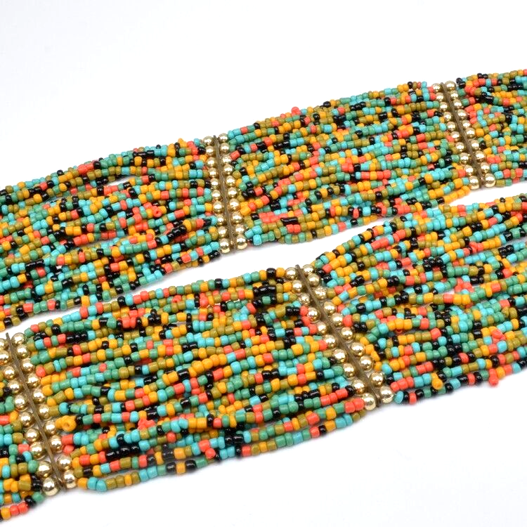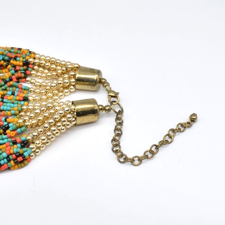 Multistrand 30 Strands Multicolor Seed Bead Necklace Also has gold tone beads. Please look closely at the photos for the condition. Would make a great Christmas gift. Great gift for her: birthday, anniversary, or gift for yourself. As with any jewelry it is a choking hazard for small children. Thank you for viewing this item. Please check out my other listings on Ebay at Kentucky Fun Treasures! I will be happy to combine shipping whenever possible. Thanks!