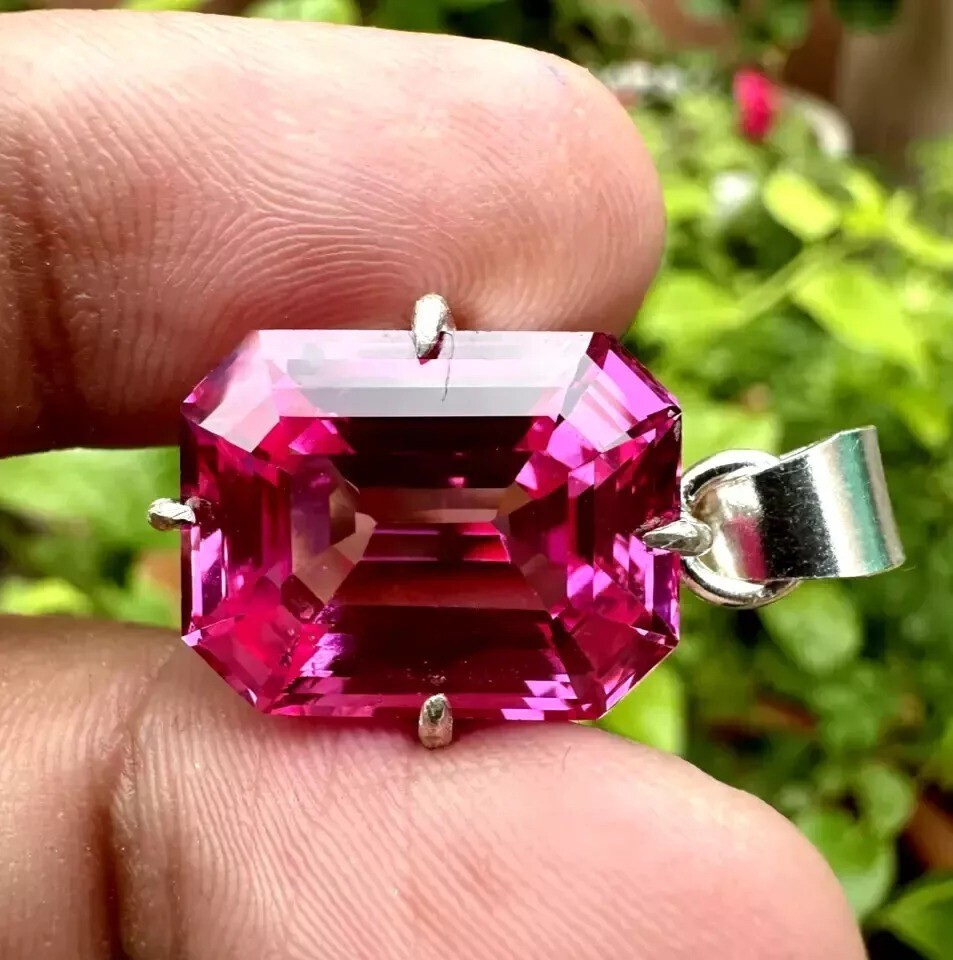 $ 2.1125.60 Ct Certified Natural Emerald Asscher Cut Silver Pendant Gemstone