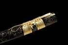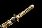 eBay Document We Can Customize Your Unique Sword CUSTOMIZE SWORD SEND FROM CHINA Blade Struture/ Length / Sori / Hamon Type / Kissaki Type / Engraving / Fittings A BOUT T HE S WORD: Fully functional and battle ready.The accessories of the sword are all authentic.It is designed by our experienced swordsmith with carefully crafting to creat a high-performance blade for real use.The sword is really cost-effective and will be your best choice to show to your friends or keep it as a collection or send it as the gift.Also,it is very suitable for training and cutting pratice. Description: Condition: Brand-New Blade Material: 1095 Carbon Steel Golden Blade Overall Length: 30.6 Inch /78Cm Nagasa Length: 20 inch/50 cm Handle Length: 7.8Inch / 20 Cm Blade Shape: Shinogi Zukuri Blade Edge: Hand Polished Be Razor Sharp Handle Material: Ray Skin + Hard Wooden Blade Width (Near Kissaki): 0.91inch / 2.3cm Width (Near Habaki): 1.26 Inch / 3.2Cm tsuba Material: High Quality Japanese Alloy Saya Material: High Quality Wood Saya Tsuka Ito: Chu -kissakireal ray skin covering and real navy silk wrap Bohi:Yes Mekugi:Nr. in bamboo Structure:Maru PACKAGE: 1 x Sword 1 x Black Sword Bag We Have 3 Types of Sword Stand, If You Need Them, You Can Click On The Image To Open The Link And Purchase. Send Form USA. S WORD P ICTURES Tsuba is made of Alloy material with elegant patterns. Other accessories are also made of Brass material, so there is no need to worry about fading and discoloration.The sheath is made of wood and Repeatedly polished and lacquered, with beautiful and delicate patterns.The handle(Tsuka) is made of wood, covered with real ray skin inside, wrapped with cotton rope. Sageo is a thick cotton rope, which feels better and looks more beautiful. Real katana sword: This katana is a handmade 1095 Carbon Steel sword for 100%. after more than 10 traditional processes, including annealing, tempering, quenching, and other heat treatment processes, is super sharp and durable. The sheath is made from high-quality wood and oil paint.The blades are hand polished , the blades are very sharp and can be used for real cutting swords. What you need to do is cleaning it with cloth or tissue.in Daily use, you also should pay attention to maintenance the product.Try not to touch the water. Once it touches the water, you must clean up the water. Avoid remaining moisture on the blade.Be careful do not place in a place where it is wet and in direct sunlight. And its handle is fixed by two "bamboo nails", which greatly enhances the stability of the sword.The rope of the handle is made of pure cotton and wrapped manually. It is very tight, sweat-absorbing and skid-resistant, so as not to slip out of your hand. The blade is forged and polished repeatedly using traditional and unique technology. The surface is very smooth. KATOKU - Sword Forge Copyright