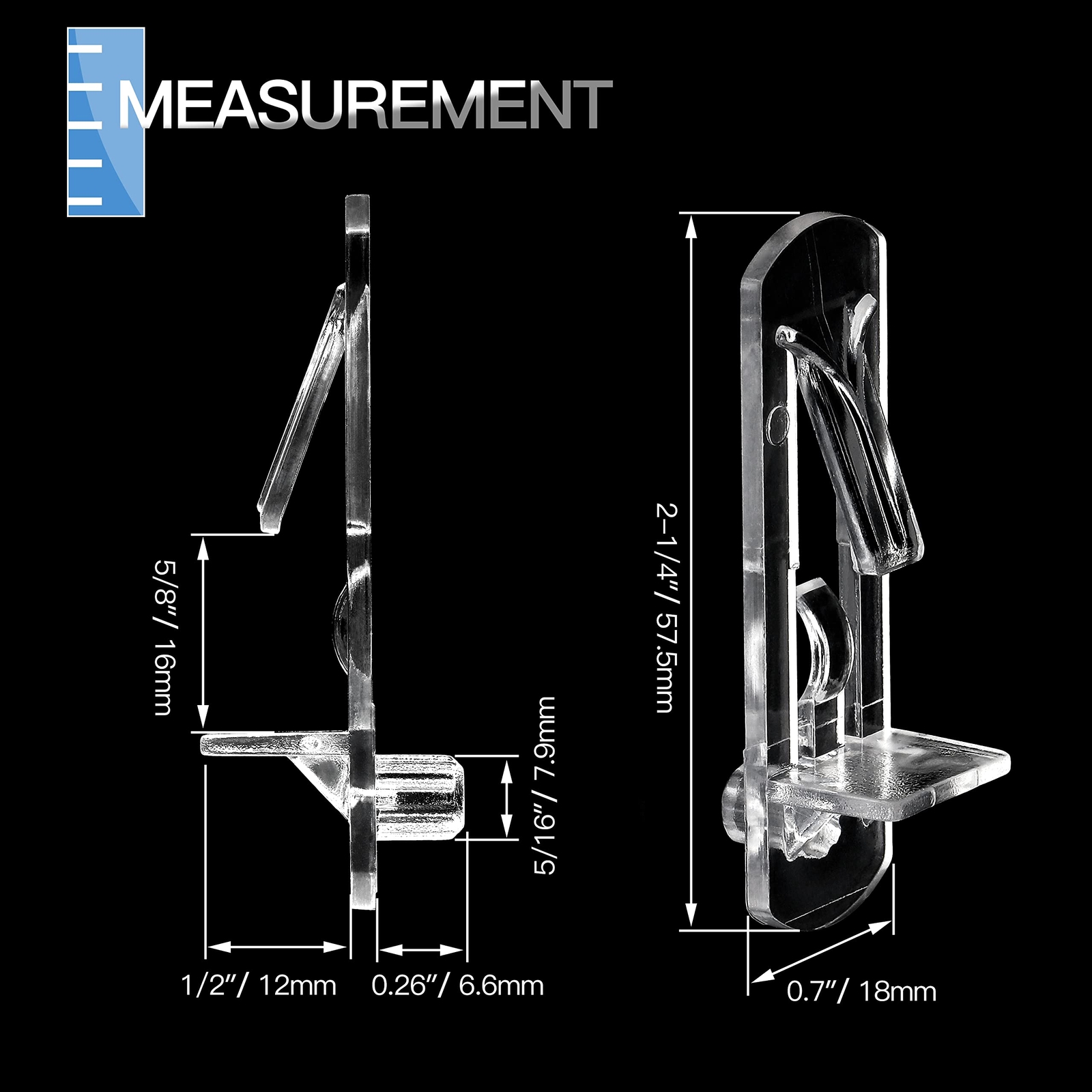 30pcs Plastic Locking Shelf Pins, Cabinet Shelf Clips Plastic Shelf Holders Pegs, Clear Shelf Bracket, 5/16" Peg x 5/8" Thick Shelf About the Product Features: 1. The shelf pins are made of clear plastic, which were thick and durable, and the transparent finish increases the concealment of installation, and improves the fashion and appreciation of the product. 2. The main feature of the shelf pegs is a self-locking piece to prevent the shelves from tilting or rotating. 3. The serrated pin design makes the product more gripping. 4. Suitable for furniture cabinets, closets, cabinets, bookcases, bookshelves, kitchens, etc. Specification: Color: Transparent Material: Plastic Peg Diameter: 5/16" / 7.9mm Shelf Thickness: 5/8" / 16mm Peg Length: 0.26" / 6.6mm Package Included: 30 x Shelf Pegs Warm Tips: 1. In order to fit tightly and prevent the shelf pegs from tilting or rotating, the hole diameter should be equal to or slightly smaller than the pin diameter (slightly smaller than or equal to 7.9mm). 2. Please confirm the required shelf thickness and pin diameter before purchasing, because we also have models suitable for other hole sizes and shelf thicknesses. 3. Since the product is measured by hand, please allow a difference of 1-2 mm, thanks! 4. Our image is as consistent as possible with the real object, but due to the equipment, display and light, the color of the two is slightly different. Key Features *Package Included: 30 x Shelf support pegs, accommodating 5/8" / 16mm thick shelves; the pegs diameter is 5/16" / 7.9mm, the pegs length is 0.26" / 6.6mm. Sufficient quantity can meet your installation and replacement needs. *Quality Preferred: The shelf pins are made of clear plastic, which were thick and durable, and the transparent finish increases the concealment of installation, and improves the fashion and appreciation of the product. The serrated pin design makes the product more gripping. *Self-locking Design: The main feature of the product is a self-locking piece to prevent the shelves from tilting or rotating. If you need to adjust the shelves, just press the spring clip, and you can remove the shelves easily. *Suitable Range: Self-locking shelf support pegs are suitable for furniture cabinets, closets, cabinets, bookcases, bookshelves, kitchens, etc. (For a fit tightly effect, the hole diameter should be equal to or slightly smaller than the pin diameter.) *Q&A: If you have any question of our products, please us by , we will reply to you within 24 hours. Delivery Information Our shipping is prompt and secure. Orders are dispatched within 1-2 business days. It should take 3-5 business days for the product to reach your destination (Saturday and Sunday excluded). We do not ship to a different address. we will ship to the address you provide on the ebay only. Please check your address before purchase. Return Policy Returns are accepted within 30 days if you are not completely satisfied. Refunds are issued back to your original payment method. Items must be returned in their original condition and packaging. Payment Options We accept PayPal, credit cards, and other payment methods supported by eBay. Please ensure your payment details are up-to-date to avoid any delays. Your Feedback Matters We appreciate your feedback. If you're happy with your purchase, please consider leaving a positive review. Contact Information If you have any queries or require further assistance, please contact us via eBay messages.