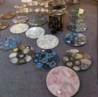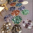 Welcome To Stone-Craft- Creations Shop Description Very unique Art by Indian Artist ,Coffee/Side Table top Used Material: Natural Agate Stones Arts Size: 30"x30" Inches Color: As Photo Shape: Round Pattern: Handmade Room: Bedroom, Dining Room, Hallway, Home Office/Study, Kid’s Bedroom, Kitchen, Laundry/Utility Room, Living Room,Patio, Playroom Packaging: Wood & Foam Export Packing Shipping: Air Can Be customize ,Please Message us your desired Size 1. It can be used as a Dining Table, Guest table, coffee table, center table top in show room as well as a gift for your loved ones. 2. The table top is made in Agra India & fully handmade. 3. The top will be delivered by FedEx or DHL free of cost door to door. 4. If there is any local tax,custom duties or Vat will be paid by the buyer at the destination. 5. The parcel is dispatch with proper packing & fully insured covering all kind of risk. 6. To maintain the table top is simple soap & water & dry cotton cloth. 7. If You Are Looking Something Customize, Let Us Know We Will Make For You As Per Your Design, Size & Shape. 8.Table top does not includes any wooden, marble stand or base if you like to buy marble or wooden base or stand that will be charged extra. Marble Agate Table Tops We are Manufacturer & Exporter of marble agate table tops. These marble agate table tops have different shapes like Round Table top, Octagonal Table Tops, Rectangle / Dining table tops, Square Table tops, Chess Table tops, Taj Mahal Table tops, Custom Designs Table tops also make marble Table top Base and Stand. Then we can be used as dining tables, coffee tables, Center tables, conference tables, chess boards, reading tables, bar tables , Garden table, side and corner tables or any other use as per the indoor and outdoor decor. They can also be placed outdoors in the garden, as marble is stain free, offers great resistance to the forces of nature, and can withstand heavy temperatures. We also meet customized requirement and offer our marble table tops at industry leading prices. About Agate Stone- Agate is a rock consisting primarily of cryptocrystalline silica, chiefly chalcedony, alternating with microgranular quartz. It is characterized by its fineness of grain and variety of color. Although agates may be found in various kinds of host rock, they are classically associated with volcanic rocks and can be common in certain metamorphic rocks. Ancient use of agate stone Agate is one of the most common materials used in the art of hardstone carving, and has been recovered at a number of ancient sites, indicating its widespread use in the ancient world; for example, archaeological recovery at the Knossos site on Crete illustrates its role in Bronze Age Minoan culture Types Of Agate 1. Fortification Agate This is the most common and distinctive type of agate. In these agates, bands crystallized into concentric layers that more or less follow the shape of the cavity. The banding resembles an aerial view of a fort 2. Water-Line Agate (also called water-level or onyx) During its formation, silica-rich solution either entered the cavity slowly laying one band at a time, excess water drained out leaving a small amount of silica to settle out into separate bands, or the vesicle filled under low pressure. In any case, the silica crystallization in water-level agates is controlled by gravity in one orientation, forming a stack up of parallel bands. 3. Shadow Agate Some agates exhibit a shadow effect in which there is what appears to be movement across the agate layers when the specimen is rocked back and forth (or your orientation to the specimen moves). This optical effect only occurs when there are alternating translucent and opaque bands. It is caused when light goes into the agate, but is not reflected out. 4. Tube Agate Tube Agate During the formation of some agates, parallel projections of tiny hair-thin mineral rods grow first within the silica gel, around which later the chalcedony agate micro-crystals form. In some cases the inclusions remain, but sometimes they weather away leaving hollow tubes that subsequently fill in with silica. 5. Eye Agates This mysterious agate characteristic is believed to be formed when most of the silica gel drains from the cavity, leaving only a droplet that “beads up” on the inside wall of the cavity. This droplet crystallizes into solid chalcedony “eyes”. In some cases, crystal growth will continue from this droplet in a manner similar to the formation of stalactites in caves. Later, the pocket fills in with the usual deposition of chalcedony microcrystals. 6. Plume Agate These agates initially had formations on their outside layer that formed prior to the deposition of chalcedony bands. They are filament growths of mineral inclusions that resemble ferns or feathers. 7. Geode Agate Geode Agate In some cases the supply of silica-rich water runs out before the entire cavity fills in. When there is a hollow center within a crystalline outer fill, the specimen is considered a geode. Not all geodes have agate banding, but many do. Also, the inner layers can form into several different types of silica mineral crystals and may even have other types of mineral crystals. 8. Moss Agate Moss Agate Moss agates have clusters of mineral inclusions that resemble plants, trees, or landscapes. Most moss agate inclusions are comprised of iron or manganese oxide. In some cases, the inclusions inhibit chalcedony banding allowing the mineral clusters free reign to grow within the silica gel. 9. Seam Agate Seam agates for in cracks within host rock, rather than in rounder pockets. The bands form in parallel rows that follow and fill in the crack or seam.