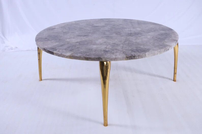 Welcome To Stone-Craft- Creations Shop Description Very unique Art by Indian Artist ,Coffee/Side Table top Used Material: Natural Agate Stones Arts Size: 30"x 30" Inches Color: As photo Shape: Round Pattern: Handmade Room: Bedroom, Dining Room, Hallway, Home Office/Study, Kid’s Bedroom, Kitchen, Laundry/Utility Room, Living Room,Patio, Playroom Packaging: Wood & Foam Export Packing Shipping: Air Can Be customize ,Please Message us your desired Size 1. It can be used as a Dining Table, Guest table, coffee table, center table top in show room as well as a gift for your loved ones. 2. The table top is made in Agra India & fully handmade. 3. The top will be delivered by FedEx or DHL free of cost door to door. 4. If there is any local tax,custom duties or Vat will be paid by the buyer at the destination. 5. The parcel is dispatch with proper packing & fully insured covering all kind of risk. 6. To maintain the table top is simple soap & water & dry cotton cloth. 7. If You Are Looking Something Customize, Let Us Know We Will Make For You As Per Your Design, Size & Shape. 8.Table top does not includes any wooden, marble stand or base if you like to buy marble or wooden base or stand that will be charged extra. Marble Agate Table Tops We are Manufacturer & Exporter of marble agate table tops. These marble agate table tops have different shapes like Round Table top, Octagonal Table Tops, Rectangle / Dining table tops, Square Table tops, Chess Table tops, Taj Mahal Table tops, Custom Designs Table tops also make marble Table top Base and Stand. Then we can be used as dining tables, coffee tables, Center tables, conference tables, chess boards, reading tables, bar tables , Garden table, side and corner tables or any other use as per the indoor and outdoor decor. They can also be placed outdoors in the garden, as marble is stain free, offers great resistance to the forces of nature, and can withstand heavy temperatures. We also meet customized requirement and offer our marble table tops at industry leading prices. About Agate Stone- Agate is a rock consisting primarily of cryptocrystalline silica, chiefly chalcedony, alternating with microgranular quartz. It is characterized by its fineness of grain and variety of color. Although agates may be found in various kinds of host rock, they are classically associated with volcanic rocks and can be common in certain metamorphic rocks. Ancient use of agate stone Agate is one of the most common materials used in the art of hardstone carving, and has been recovered at a number of ancient sites, indicating its widespread use in the ancient world; for example, archaeological recovery at the Knossos site on Crete illustrates its role in Bronze Age Minoan culture Types Of Agate 1. Fortification Agate This is the most common and distinctive type of agate. In these agates, bands crystallized into concentric layers that more or less follow the shape of the cavity. The banding resembles an aerial view of a fort 2. Water-Line Agate (also called water-level or onyx) During its formation, silica-rich solution either entered the cavity slowly laying one band at a time, excess water drained out leaving a small amount of silica to settle out into separate bands, or the vesicle filled under low pressure. In any case, the silica crystallization in water-level agates is controlled by gravity in one orientation, forming a stack up of parallel bands. 3. Shadow Agate Some agates exhibit a shadow effect in which there is what appears to be movement across the agate layers when the specimen is rocked back and forth (or your orientation to the specimen moves). This optical effect only occurs when there are alternating translucent and opaque bands. It is caused when light goes into the agate, but is not reflected out. 4. Tube Agate Tube Agate During the formation of some agates, parallel projections of tiny hair-thin mineral rods grow first within the silica gel, around which later the chalcedony agate micro-crystals form. In some cases the inclusions remain, but sometimes they weather away leaving hollow tubes that subsequently fill in with silica. 5. Eye Agates This mysterious agate characteristic is believed to be formed when most of the silica gel drains from the cavity, leaving only a droplet that “beads up” on the inside wall of the cavity. This droplet crystallizes into solid chalcedony “eyes”. In some cases, crystal growth will continue from this droplet in a manner similar to the formation of stalactites in caves. Later, the pocket fills in with the usual deposition of chalcedony microcrystals. 6. Plume Agate These agates initially had formations on their outside layer that formed prior to the deposition of chalcedony bands. They are filament growths of mineral inclusions that resemble ferns or feathers. 7. Geode Agate Geode Agate In some cases the supply of silica-rich water runs out before the entire cavity fills in. When there is a hollow center within a crystalline outer fill, the specimen is considered a geode. Not all geodes have agate banding, but many do. Also, the inner layers can form into several different types of silica mineral crystals and may even have other types of mineral crystals. 8. Moss Agate Moss Agate Moss agates have clusters of mineral inclusions that resemble plants, trees, or landscapes. Most moss agate inclusions are comprised of iron or manganese oxide. In some cases, the inclusions inhibit chalcedony banding allowing the mineral clusters free reign to grow within the silica gel. 9. Seam Agate Seam agates for in cracks within host rock, rather than in rounder pockets. The bands form in parallel rows that follow and fill in the crack or seam.
