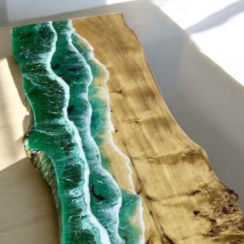 40x80 Ocean Wave Resin Dining Table Custom Epoxy Wood Coastal Decor