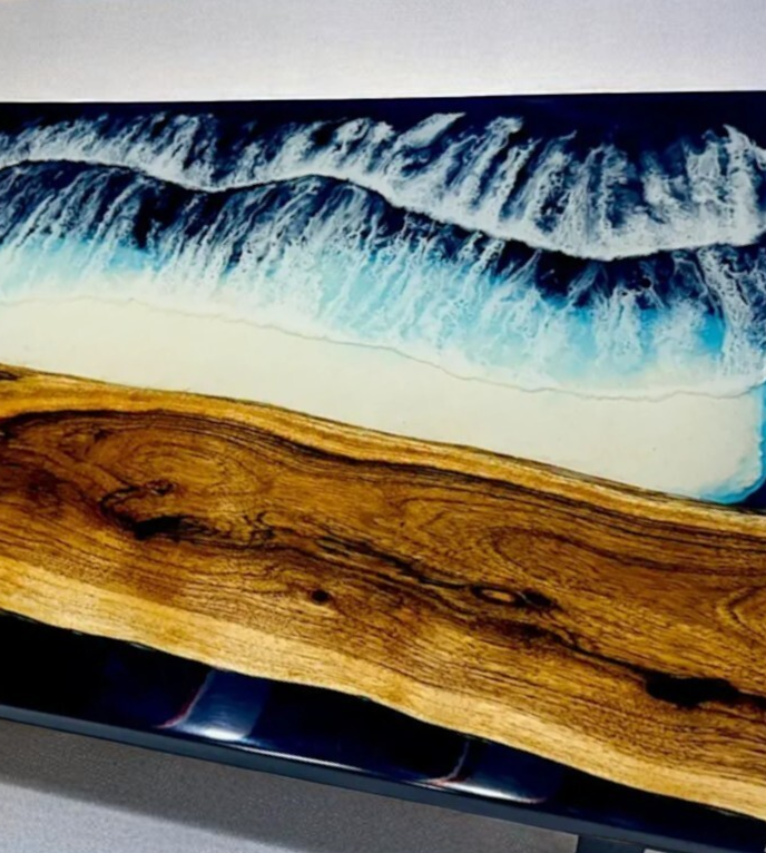 Table Size: 72"x30 " Inches Stand Size: 28.5" Inches Tall Experience the pinnacle of craftsmanship with our Handmade Wood and Epoxy Resin Trading Desk, designed to enhance your workspace with a blend of modern elegance and artisanal quality. Each desk is crafted from premium Walnut wood, enriched with vibrant pigments that create a stunning visual effect. The result is a unique, functional work of art that serves as both a statement piece and a practical surface for your trading or gaming needs. Key Features: Premium Materials: Our desks are crafted from high-quality wood and epoxy resin, combining durability with artistic beauty. The rich texture of the wood is accentuated by the glossy resin, making each desk a one-of-a-kind masterpiece. Customizable Options: Choose from a variety of stand colors, including Black, Silver, or Golden, to perfectly complement your interior decor. Additionally, we offer customization for size and shape, allowing you to create a desk that fits your exact specifications. Contemporary Design: The resin river design adds a contemporary touch to your space, ensuring your desk stands out as a unique focal point in any room. Perfect Gift Idea: This desk is an ideal gift for those who appreciate exceptional craftsmanship and modern design. Its stylish appearance and functional design make it a thoughtful and impressive gift. Live Edge Detail: We use the finest live edge wood slabs, sourced from both domestic and exotic species, ensuring each desk has a natural, organic feel. The live edge detail adds a rustic charm, making each piece truly unique. UV Resistant Resin: The high-quality resin used in the tabletop not only enhances the beauty of the desk but also offers exceptional strength and durability. It’s UV resistant, ensuring that the vibrant colors and glossy finish will last for years to come. Ordering Information: Made to Order: Each desk is meticulously handcrafted upon order, ensuring a personalized touch and the highest attention to detail. Worldwide Shipping: We offer global shipping, with buyers responsible for any applicable customs and import taxes. Please note that due to the use of raw wood, each desk may vary slightly from the one shown in photos, adding to its uniqueness. Thank you for visiting........................