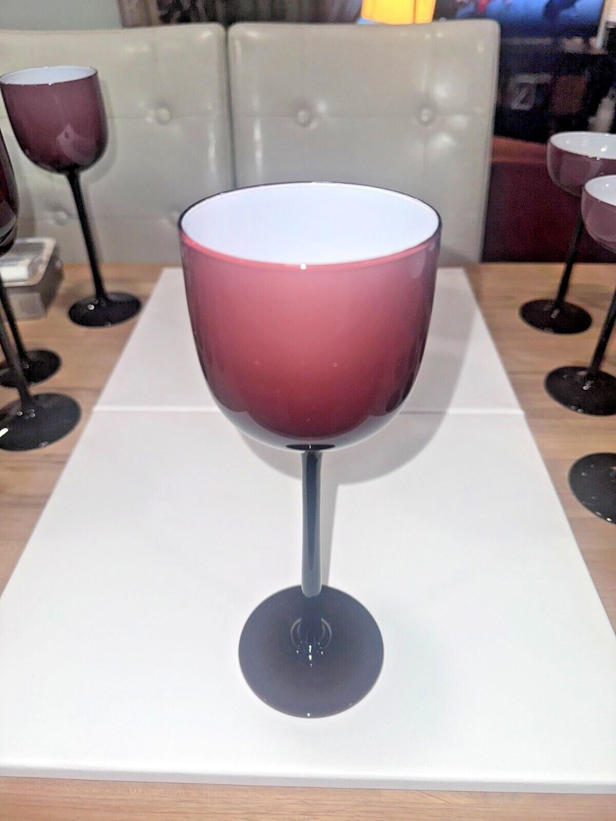 This vintage set by 1960's Carlo Moretti includes 31 wine glasses in a rare amethyst color. Each glass is hand-blown in Italy, featuring a glossy finish and a mid-century modern style. The collection includes 11 Long Stem Wine Glasses, nine Champagne Stem Glasses, and Eleven Port Wine Glasses. These glasses are very rare, and having 31 of them is even more rare. These would make an excellent Wedding Gift, a beginning or addition of your own collection of antique vintage glassware, or a great investment to hold on to and sell at a later date. Take advantage of the fact I am not in a position to do the same.