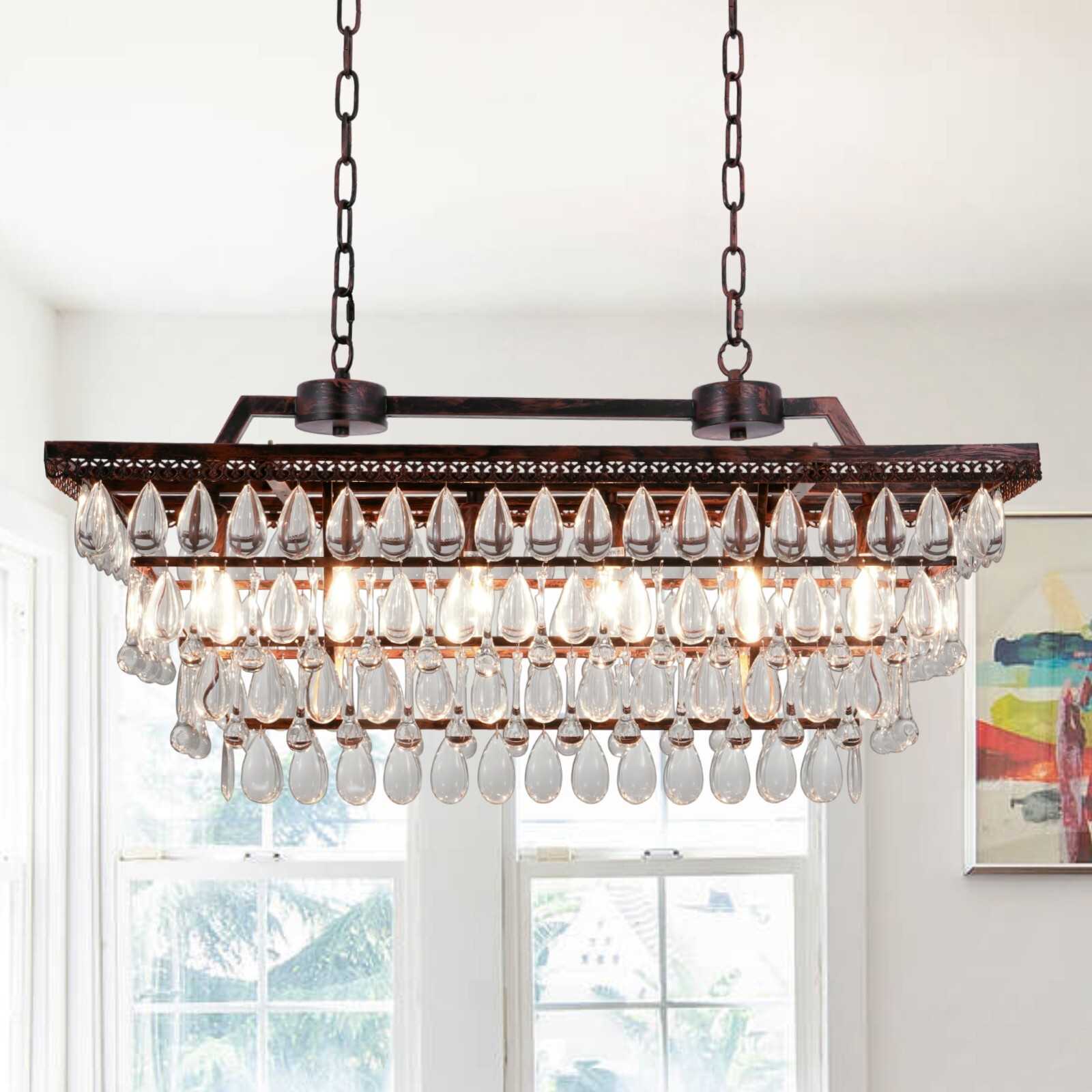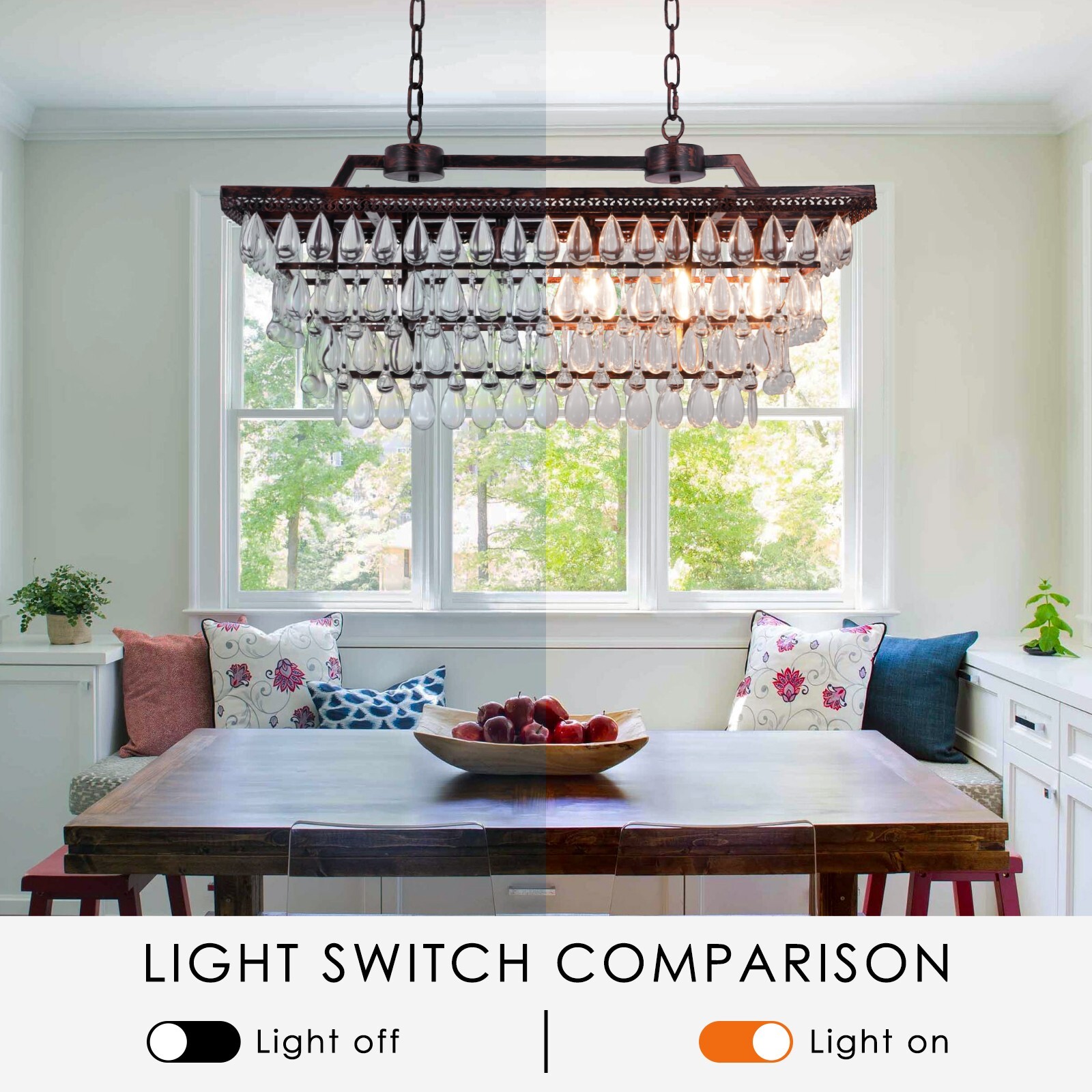 31.5" Antique Bronze Rectangle Crystal Chandelier 6-Lights Modern Pendant Lamps About this item Elegant Cascade of Light: Featuring faceted glass crystals that create a breathtaking cascade of light, this chandelier's crown showcases a mesmerizing display of raindrops, providing stunning illumination for dining tables or entryways. Intricate Filigree Design: Adorned with a delicate filigree band embellished with polished crystals, this chandelier exudes elegance and luxury, adding a touch of sophistication to any space. Dimmable: This luxury crystal chandelier for stairway requires 6*E12 base bulbs (40 watts maximum power per bulb), if you use dimmable bulbs and dimmers, this dining room light fixture is dimmable. (All bulbs and dimmers are not included). Adjustable Height: The kitchen chandelier can be adjusted according to different needs and the different ceiling height. The chandelier is equipped with 16.5'' extension chain of different lengths, which can well meet all your needs and easy to install. Installation:This royal crystal chandelier comes with detailed installation instructions on the package. You may follow the installation instructions on the package to assemble and hang the crystals, or you may ask a professional to install it. Specification: Maximum hanging height: 20 inches (adjustable) Dimensions: W 31.5 inches * H39 inches Product weight: 24.9lb Maximum bulb wattage: 40 watts Base Type: E12 Number of Lamps: 6 lamps Voltage: 110V Features: Crystal modern chandelier is a gorgeous ceiling light fixture. The modern chandelier is made of high quality material, bright steel and beautiful. Light up your space with this luxurious and chic chandelier! Suggested Space Application: Dining room, living room, bedroom, kitchen island, children's room, hallway, aisle, hotel, etc. Assembly: The installation of this chandelier takes some time but it's worth it, professional installation is highly recommended. Warranty: If you receive a damaged or defective product, please contact our customer service and we will deal with your problem immediately! We are committed to your 100% satisfaction! Payment Delivery details Terms of sales About us Contact us Payment We only accept several paymeny ways as follow: Delivery details Your goods will be shipped within our handling time after your full payment. This excludes these locations: Alaska, Hawaii and Puerto Rico.APO/FPO’s are definitely excluded. Terms of sales Return: We accept return within 30 days,but we are not responsible for human damage.The return shipping cost is the buyer's responsibilities and try to keep it in your original package. About us We are selling all kind of ceiling fan,crystal chandelier,pendant lights in high quality with best discounted price. Our goal is providing all our customers 100% satisfaction and best customer service. Contact us If you have any questions please contact us through "Ask seller a question" link. We will respond within 2 business day or less.