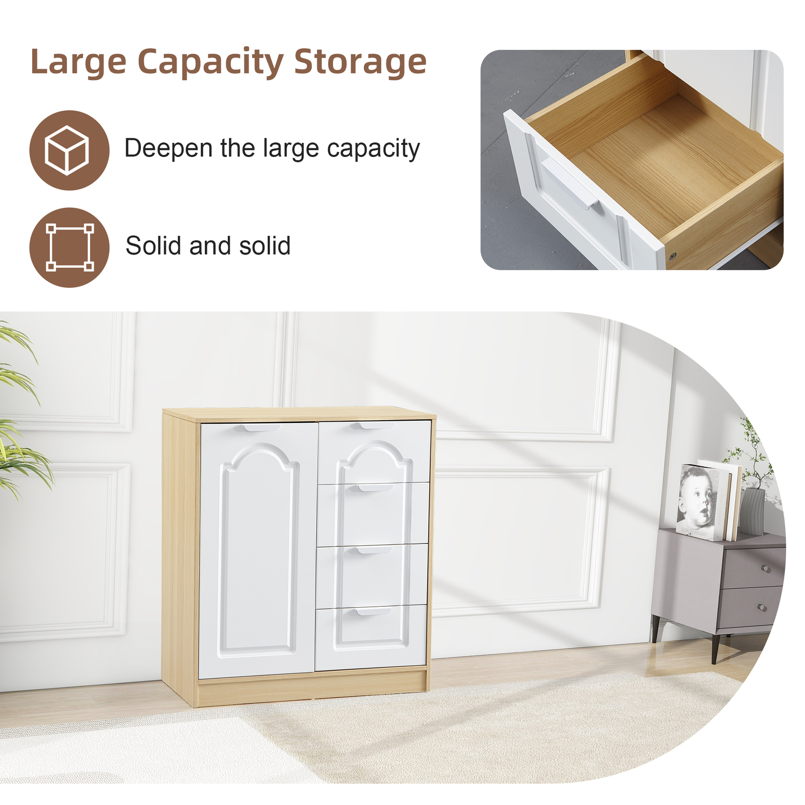 ☀31.5"Large Storage Cabinet with Adjustable Shelf,Freestanding Storage Organizer Cabinet with 4 Removable Drawers,Floor Cabinet for Entryway,Living Room,Kitchen,white and Wood color ☀ ☀More space: Equipped with metal white handles, elegant and durable. The cabinet is designed with 4 drawers, each capable of supporting up to 33LBS. Suitable for storing various objects. ☀Storage cabinet:There is an adjustable shelf inside the cabinet door, with a maximum load capacity of 55LBS. ☀Metal handle: Equipped with metal white handles, elegant and durable. ☀Easy matching: The Bathroom storage cabinet is modern in white. It is perfect for any house style, like bedroom, living room, bathroom, hallway, study or office, and also easy matching with ... 31.5"Large Storage Cabinet with Adjustable Shelf,Freestanding Storage Organizer ☀31.5"Large Storage Cabinet with Adjustable Shelf,Freestanding Storage Organizer Cabinet with 4 Removable Drawers,Floor Cabinet for Entryway,Living Room,Kitchen,white and Wood color ☀ ☀More space: Equipped with metal white handles, elegant and durable. The cabinet is designed with 4 drawers, each capable of supporting up to 33LBS. Suitable for storing various objects. ☀Storage cabinet:There is an adjustable shelf inside the cabinet door, with a maximum load capacity of 55LBS. ☀Metal handle: Equipped with metal white handles, elegant and durable. ☀Easy matching: The Bathroom storage cabinet is modern in white. It is perfect for any house style, like bedroom, living room, bathroom, hallway, study or office, and also easy matching with any type of furniture. ☀Material structure: Most of the cabinets is made of durable Particle Board wood and MDF.Durability and stability ensure long-term use. ☀Safety design: There is an anti rollover restraint kit on the back, which can be securely fixed to the wall. Item Specifics Type Cabinets Color Ancient White,Natural Wood Main Material Particle Board MDF Item Length 40.16 in Item Width 18.50 in Item Height 8.66 in Weight 87.60 pound Brand Unbranded UPC N/A MPN N/A About us Dear buyer, Thank you for visiting my store! Our warehouses are located in many regions around the United States. According to the customer's delivery address. Use USPS/UPS/DHL logistics transportation service. Prioritize the best quality logistics solutions to transport packages. Ensure package delivery time, At the same time. Have any after-sales problems, Feel free to contact us. At your service Payment PayPal is our preferred method of payments it's the quickest, easiest and most secure way to pay for your goods or services online. PayPal offers buyer and seller protection should there be a problem. If you do not have a PayPal account, to get started and buy your first item with us is very easy. Simply click on the 'Buy It Now' button and follow the eBay checkout steps. Select PayPal as the payment method you then will be given the chance to enter your card details in to PayPal's secure checkout in order to pay for your order. Shipping 1. Your purchase is shipped directly to you as soon as we have received your cleared payment. 2. Normally all of parcels would be shipped within 3days(From Monday to Saturday). 3. We will send information on eBay or email if the parcel was delayed due to our holiday. 4. We provide three kinds of shipping for choice. Shipping way depend on delivery address. Returns If an unit is received defective, of course we take it back or replace it. If the unit is received as expected, we must charge for our expenses if you want to send it back. We have to charge for the work of handling, retesting and restocking. DESCRIPTION PAYMENT SHIPPING RETURN POLICY CONTACT US Shop Category Store Home Home & Garden ▷ Furniture ♢ Home Office ♢ Primary Living Space ♢ Dining Furniture ♢ Household Supplies & Cleaning ▷ Yard, Garden & Outdoor Living ♢ Garden Hand Tools & Equipment Toys & Hobbies ◈ Ride On Toys & Accessories Pet Supplies Hot Item Swivel Recliner Chair,Rocker Glider Chair for Living Room,Office Faux Leather R USD 318.00 Amiel All Purpose Gray Finish Writing Desk USD 273.20 Guest Waiting Room Office Arm Chairs 2 Pack No Wheel for Reception Meeting Conf USD 154.80 Gaming Chair with Footrest,Big and Tall Gamer Chair,Racing Style Adjustable Swi USD 161.80 Criss Cross Chair with Wheels,Armless Legged Office Desk Chair,Comfy Swivel Ro USD 113.60 Picture New List Item Drawer Dresser cabinet ,all Dresser with 5 PU Leather Front Drawers,Storage Tow USD 106.70 Simma Bookcase,Metal Hardware,Three Shelves,Double Door Cabinet -Black USD 226.60 Vinsetto Modern Mid Back Office Chair with Velvet Fabric,Swivel Computer Armles USD 144.80 79.5" Extra Large Bunny Cage with 2 Runs House Small Animal Habitats for Guinea USD 244.30 Carved 3 Door Sideboard with LED, Buffet Cabinet Storage Cabinet Modern Coffee USD 270.20 Help & Info Payment Policy Shipping Policy Return Policy FAQ About Us 31.5"Large Storage Cabinet with Adjustable Shelf,Freestanding Storage Organizer ☀31.5"Large Storage Cabinet with Adjustable Shelf,Freestanding Storage Organizer Cabinet with 4 Removable Drawers,Floor Cabinet for Entryway,Living Room,Kitchen,white and Wood color ☀ ☀More space: Equipped with metal white handles, elegant and durable. The cabinet is designed with 4 drawers, each capable of supporting up to 33LBS. Suitable for storing various objects. ☀Storage cabinet:There is an adjustable shelf inside the cabinet door, with a maximum load capacity of 55LBS. ☀Metal handle: Equipped with metal white handles, elegant and durable. ☀Easy matching: The Bathroom storage cabinet is modern in white. It is perfect for any house style, like bedroom, living room, bathroom, hallway, study or office, and also easy matching with any type of furniture. ☀Material structure: Most of the cabinets is made of durable Particle Board wood and MDF.Durability and stability ensure long-term use. ☀Safety design: There is an anti rollover restraint kit on the
