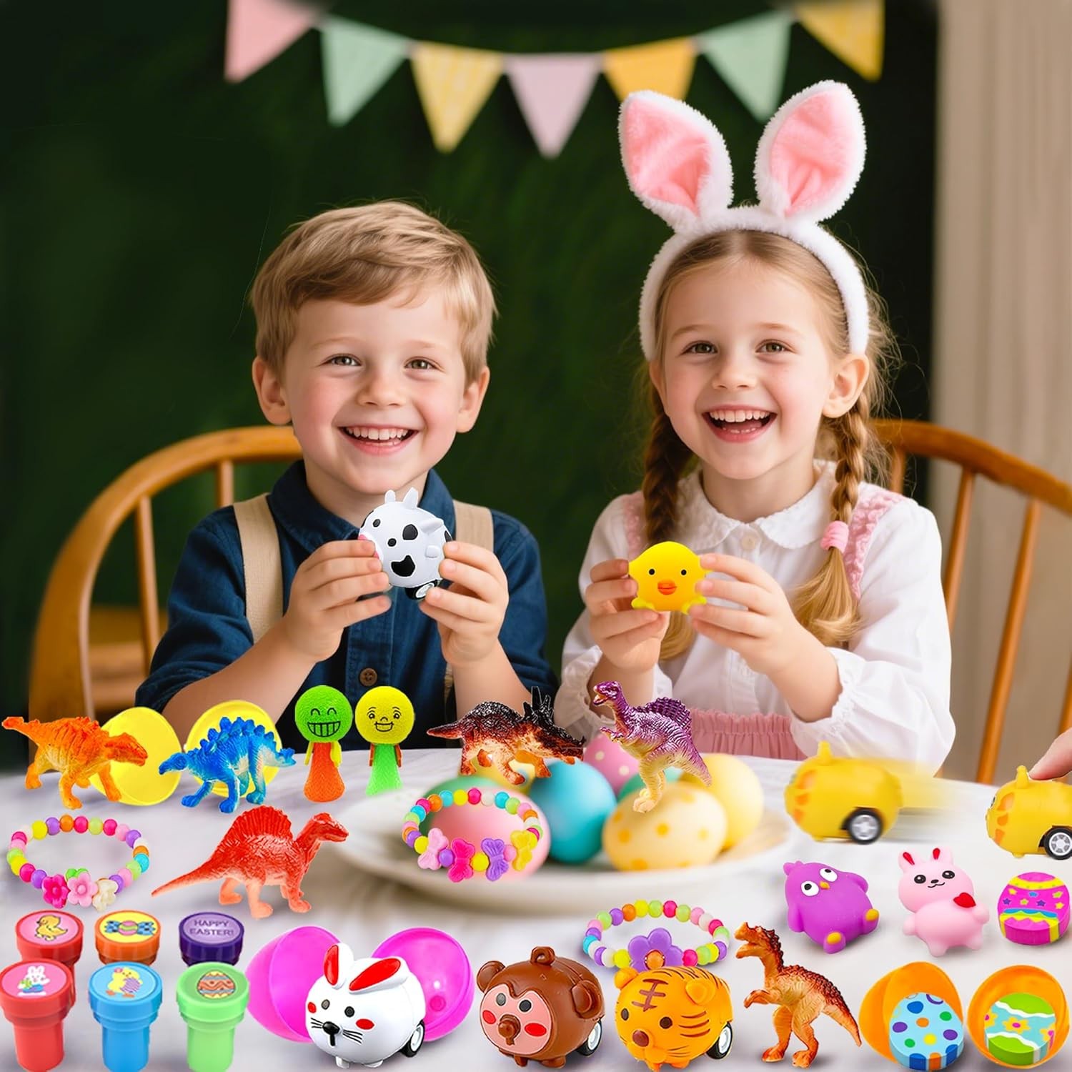 Free eBay listing template designed by dewiso.com 318 pcs Easter Eggs 100 pack Easter Eggs Bulk wtih 218 Toys inside Small Toys for Easter Egg Easter Basket Stuffers Hunt Party Favors for Kids Toddlers Boys Girls FREE AND FAST SHIPPING! About this item 🐣Super Value Pack : 100 easter eggs for kids with toys inside, a variety of 218 pcs toys: , 6 slap bracelets, 6 animal pull back cars, 15 easter themed erasers, 10 mochi squishy, 6 stretchy easter bunny, 6 jump toy, 10 stamps, 12 mini dinosaurs toy, 6 easter keychains, 10 pcs temporary tattoos for kids, 100 pcs easter stickers and 21 cute rings and 10 bracelets for little girls. 🐇Safe and Durable: These plastic Easter eggs for kids are made of high-quality plastic that is non-toxic and BPA-free. They are easy to open and close, and won't break or fade easily. All bulk Easter eggs and Easter toys have a soft surface and smooth edges, ensuring your child can play safely. These high-quality plastic eggs are suitable for both indoor and outdoor play,not for kids under 3 years old. 🎊Easter gift for all occasions : Our stuffed easter eggs suitable for many occasions such as kids easter basket stuffers,easter egg fillers, easter goody bags stuffers for kids, easter trinkets, easter treats for kids, easter party favors, easter party supplies, easter prizes, eggs for easter egg hunt, classroom rewards, carnival prizes in bulk, easter eggs filled with toys for kids, stuffed easter eggs, easter baskets for kids. 🍭FUN EDUCATIONAL TOYS: These Easter eggs with toys are not only fun to play with, but also provide interactive activities that develop social skills and improve eye-hand coordination. Kids will be delighted when they discover the prizes filled with colorful Easter eggs. 🎁The Perfect Easter Gift: Give your child the perfect gift and make this Easter unforgettable. Our Easter eggs bulk are made of premium quality, ensuring a delightful and magical experience for children, making them the ultimate Easter gift. Make Easter more exciting, fun, and engaging for your child. Product We offer a 30-Day Return Policy on items which you are not completely satisfied with. You have the option for a full-refund or an exchange of the item. No returns are available on items shipped outside of the US . Shipping We offer Free Shipping to the US and ship within 2 business days of payment, usually sooner. We use UPS express shipping. That's why your products are usually delivered within 3 days . Contact We try our very best to make sure every customer is completely satisfied. If there's a problem , message us! We're happy to help. 24/7 live chat available.