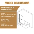 31''x55''Frameless Pivot Shower Door Panel for Bathtub, 1/4" SGCC Tempered Glass