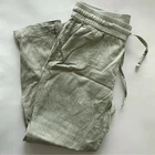 Comfortable linen blend pants. Pull-on elastic waistband with drawstring closure. High waist and cropped. Light sage color, perfect for summer. Very good pre-owned condition. Bundles and offers welcome. Front rise: 10.5" Inseam: 20.5" Tags: natural fibers, vacation, summer style, lightweight, basics, boho, minimalist, neutrals