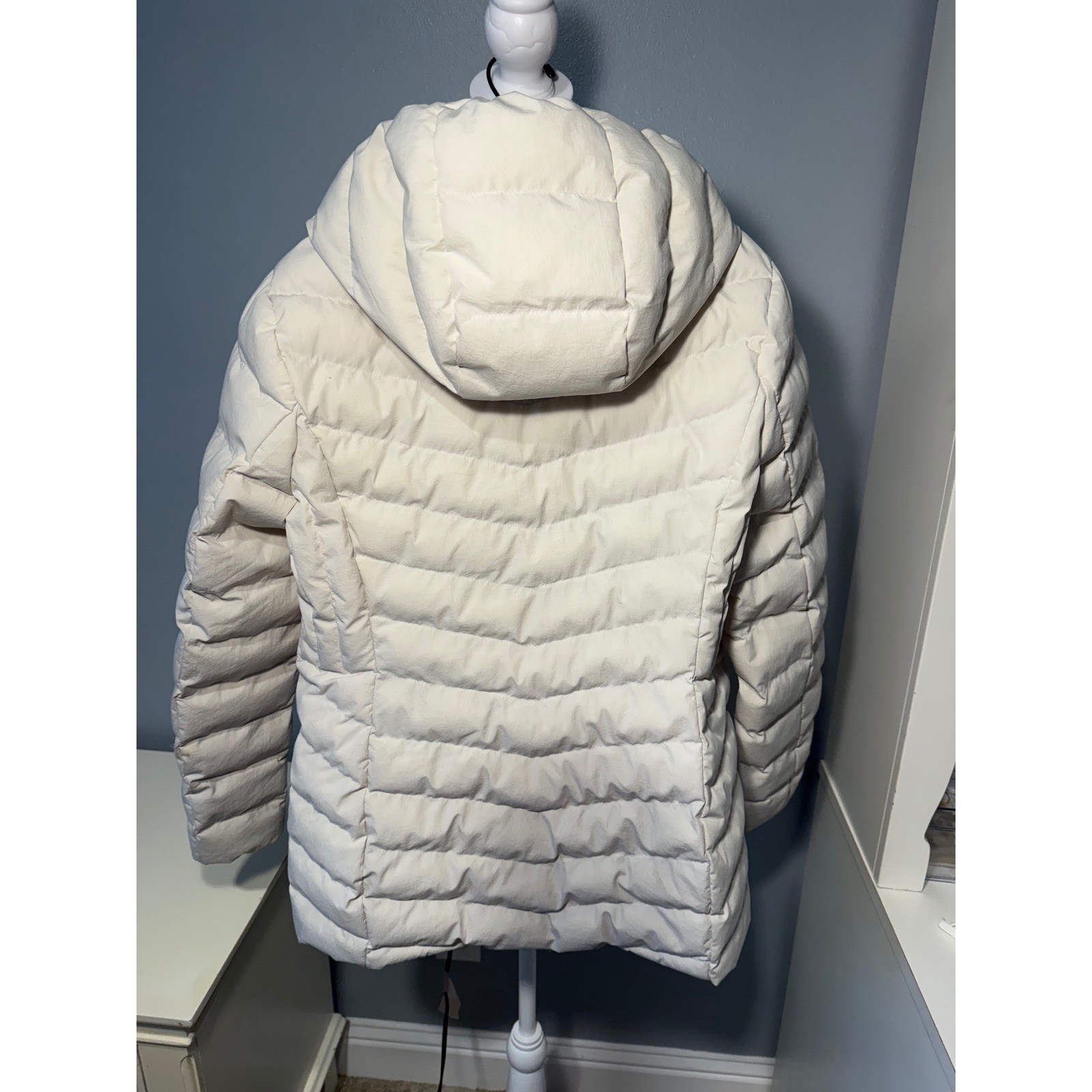 Women's cream quilted puffer jacket by 32 Degrees Heat. This hooded jacket features a full zip front and convenient side zip pockets. Its versatile design makes it perfect for everyday wear, outdoor adventures, or travel. Measurements: • Length: 30 • Bust: Pit to pit 20 in Type: Jacket Outer Shell Material: Polyester Style: Puffer Jacket Department: Women Lining Material: Polyester Accents: Zipper Features: Padded, Lightweight, Pockets, Zipped Pockets Fabric Type: Microfiber Pattern: Solid Insulation Material: Down Season: Fall, Winter Closure: Zip Occasion: Casual Keywords: puffer jacket, quilted, hooded, cream, winter, fall, casual, outerwear, lightweight, warm, zip pockets, travel, activewear