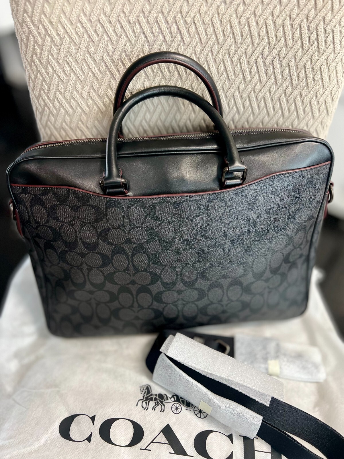 New With Tags Original Price 595 Authentic Coach Canvas Bag Compartments: Laptop compartment, tablet compartment Closure: Zipper Pattern: Print Carrying options: Adjustable cross-body strap, detachable cross-body strap, different carrying options Item number: COH52H027-Q11