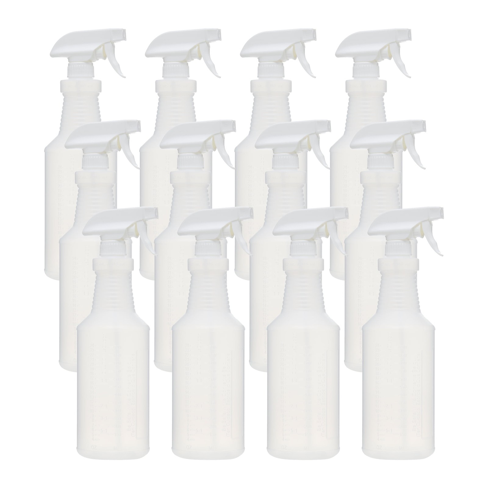 A 12-pack of 32-ounce all-plastic spray bottles for your spraying needs. All-plastic sprayers mean no metal parts that can corrode. The convenient 12-pack means you always have a spray bottle ready for your spraying needs inside and outside your home. This multi-purpose sprayer is your one-stop shop for all your indoor and outdoor spraying needs. You can use this multi-purpose sprayer to clean your home, water your plants, train your pets, or clean your car. All-plastic sprayer 32 fl oz spray bottle capacity On/off spray option Refillable and reusable