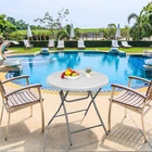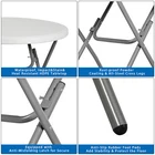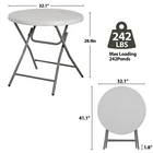 Features: Lightweight & Durable: The honeycomb surface of bottom side helps to enhance the load capacity, and effectively reduces the overall weight.Powder-coated steel frame and x-shaped structure for extra strength and stability. Weatherproof Tabletop: Made of High Density Polyethylene not only resistant to rain in outdoor but also easy to clean with a damp cloth. Rubber Foot Pads Design: Non-marring floor caps protect your floor by sliding smoothly when you need to move the table. Foldable and Storage: Table legs lock in place when in a down position, but can also fold up and be put away for convenient storage. Specifications: Color: White Material: HDPE, Steel Item Weight: 16 LBS Overall Size: 32.1"*32.1"*28.9"(L x W x H) Folded Size: 41.1*32.1*1.8in(L x W x H) Load Capacity: 240 LBS