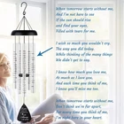 Sympathy Wind Chimes: It's really difficult to overcome the loss of a loved one. Words sometimes can be pale and nerveless for a grieving heart. Gifting our sympathy wind chimes will be a great way to say that you care from the heart Healing Poem Printed: Each tube is UV printed with a touching poem, “when tomorrow starts without me, don’t think we are far apart. For every time you think of me, I’m right here in your heart.” These moving words will bring comfort and support to help assuage the grief in loving memory. This is an ideal sympathy gift for a friend or family member in grief Memorial Gifts Ready to Gift: Wind chimes can be better than flowers. Flowers will fade away while wind chime will last long to accompany. This memorial wind chimes is well packaged in an elegant gift box, and covered nicely in wrapping paper. Each aluminum tube is secured in a protective film Exquisite Sympathy Card: This in memory of loved one gifts also comes with an exquisite sympathy card, which has the same heartfelt poem on it and blank on the back for your own loving message. An appropriate and thoughtful bereavement gifts for sympathy, remembrance, condolence and funeral Soothing Melody to Heal: Our wind chimes have a soothing and pure tone, playing relaxing and beautiful sound on the whims of the wind. When listening to it, tension and anxiety can be relieved, peace of mind will be regained, warm memories will be recalled to help fight over any loss or setback. Please click our video and enjoy the wonderful clear sound of our wind chimes Loving Memories to Recall: Gift this memorial wind chimes as best wishes to help deal with loss of mother, father or husband, siblings, etc. All the loving memories and happy time recalled by this wind chime will be remembered and treasured for a life time preciously Premium Material & Thoughtful Mute Mode: We adopt premium quality aluminum to craft this wind chimes for outside and cut no corners. 5 silver aluminum tubes are professionally anodized finished, rustproof and will keep bright as new. Unlike wood parts easy to crack, the top cap and the hook are made of powder coated aluminum, corrosion-resistant and able to hold up in the outdoor elements for years Perfect Garden Decor: Excellent decor choice for porches, patios, decks, terraces, balconies, and gardens. Just take a deep breath and relax. This breezy, playful wind chimes will add a peaceful background sound to help turn your outdoor space into a meditative oasis. The dense striker on the central string is adjustable to be upper and lower to get different tones, or even a mute mode whenever you need Proper Size Choice: Our wind chimes is of medium size, overall 32 inches, not too small like 19” or 24.5” or too large as 38” or 44 No Risk Purchase: If you have any questions or problems, please feel free to let us know, we will give you a 100% satisfactory solution ASAP to help Product Description Fabuday Sympathy Wind Chimes How we start My close friend lost her father the other day. I can tell that she was grieving and felt lonely although she did not express too much. I really wanted to comfort and delight her but words sometimes are so pale and nerveless. So I decided to gift her a wind chimes to heal. We listened to the wind chimes in silence for a while. Suddenly her tears rolled down and said thank you. I didn't say anything and just gave her a hug. And I knew , our hearts were so close at that moment. So I want to provide this loving keepsake, bring comfort and support to grieving hearts after loss of a loved one. Sympathy Gift to Say You Care From the Heart Heart Touching Sentiment Words On the wind catcher: "Listen to the wind and think of me. I am always with you." On the tubes: “when tomorrow starts without me, don’t think we are far apart. For every time you think of me, I’m right here in your heart.” Lasting Memorial Gifts, Better Than Flowers Flowers will fade away while wind chime will last long to accompany. Corrosion-resistant and able to hold up in the outdoor elements for years. Package Includes: Wind Chimes*1 Sympathy Card*1 Gift Box*1 Perfect Medium Size Excellent decor choice for porches, patios, decks, terraces, balconies, and gardens. Just take a deep breath and relax. Overall Size: 32'' Top Diameter: 6.4'' Wind Catcher Size: 4.5 x 3.6'' Gift Box Size: 14.6 x 6.7 x 2.7'' Windchimes in Memory of a Loved One Exquisite Gift Box Well packaged in an elegant gift box, covered nicely in wrapping paper, and each aluminum tube is secured in a protective film. Sympathy Poem Card With a touching poem on the remembrance card and blank on the back for your own written message. Memorial Gifts for Loved One - How to add GIFT message? TIPS for you. Step 1: Click "Add gift receipt" Before placing your order; Step 2: Write Your Loving Message & Signature. -Just gift this memorial wind chimes as best wishes to help beloved one overcome sadness. Get people connected and support each other with this gentle wind... IMPORTANT REMINDER: How to send this memorial wind chimes as gift so people know who sent it? You have to mark it as a gift. Otherwise, the recipient won’t know who it’s from. 1. On the cart subtotal screen that opens next, click the small checkbox that says “This order contains a gift.” 2. When you Click proceed to checkout,you’ll see a page to customize a message -- the default is set as “Hi, Enjoy your gift!” and a note who it’s from. 3. You can include an optional gift box for an added fee.