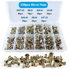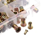 Rivet Nut Kit, 320pcs Rivet Nut Assortment Kit w/ Galvanized Carbon Steel Flat Head Threaded Insert Nuts, Knurled Body with Case, for Rivet Nut Tool, Riveter, Rivnut Gun, SAE Sizes 5/32"-32UNC, 8-32UNC, 10-24UNC, 1/4"-20UNC, 5/16"-18UNC, 3/8"-16UNC, 1/2"-13UNC Bullet Point 【320pcs Metric RIVET NUT】 : In this set, we provide 7 size of rivet nut, includes: 80pcs-------5/32"-32UNC, 70pcs-------8-32UNC, 60pcs-------10-24UNC, 40pcs-------1/4"-20UNC, 30pcs-------5/16"-18UNC, 20pcs-------3/8"-16UNC, 20pcs-------1/2"-13UNC; total 320pcs. 【Feature】 : Head Type-Flat Head; Knurled body. Nuts have a work-hardened surface providing high-strength, load-bearing threads. 【DURABLE QUALITY】 : These rivet nuts boast superior strength and offer corrosion-free, rotation-resistant performance and acid resistant thanks to their precision threading and quality construction from galvanized carbon steel. You will no longer worry about them rusting and breaking when installing. 【WIDE APPLICATION】 : Our rivet nuts are used to provide firm and problem-free attachment for screws and bolts in home improvement and for a wide range of manufacturing including automobiles, aircraft, appliances, furniture, decoration, and more. Rust resistant and strength enough to apply in many kinds of heavy-duty materials including sheet metal, steel, aluminum, plastic, fiberglass etc. 【RUGGED BOX】 : These nuts kit is lightweight, very convenient to carry. Meanwhile, the transparent storage box had been thickened, more durable and sturdy than others, enough to accommodate all items safely. Pictures Description Premium Zinc Plated Carbon Steel Rivet Nuts, Gives You a 5 Stars Reliable Smart Fasteners Home Improvement Specifications Name: Rivet nut Material: Carbon steel, zinc plated. Type: Flat head, Knurled body. Size type: Metric size assorted in 5/32"-32UNC, 8-32UNC, 10-24UNC, 1/4"-20UNC, 5/16"-18UNC, 3/8"-16UNC, 1/2"-13UNC Thread---Drill Hole Size-----Head Dia.---------Head Height--------Total Length--------Grip Range 8-32UNC---------0.260’’----------------0.374’’---------------0.024’’---------------0.510’’ --------------0.02’’-0.08’’ 10-24UNC--------0.291’’----------------0.402’’--------------0.031’’---------------0.512’’---------------0.02-0.12’’ 1/4-20UNC-------0.356’’----------------0.500’’--------------0.039’’---------------0.61’’ ----------------0.04’’-0.14’’ 5/16-18UNC-----0.394’’----------------0.552’’--------------0.039’’----------------0.728’’---------------0.04’’-0.16’’ 3/8-16UNC-------0.472’’----------------0.675’’--------------0.039’’---------------0.728’’----------------0.04’’-0.16’’ Package Included (Total 320pcs Rivets) : 1 x Storage Case 80pcs x 5/32"-32, 70pcs x 8-32, 6 0pcs x 10-24, 40pcs x 1/4"-20, 30pcs x 5/16"-18, 20pcs x 3/8"-16, 20pcs x 1/2"-13 Brand: iMeshbean 100% High Quality. About US: iMeshbean is a registered trademark in the USA, Europe and China. We have proudly designed our own products and successfully created our own brands in the industries. In order to provide the peaceful shopping experience,our dedicated customer service teams can response to all the requests within 24 hours. All the returns and exchanges will be processed within 3 days.We honor 30 days' return on any products customers are not satisfied. Being our customer is a wise choice! Warranty If you have any questions you may reach us via ebay message. Get In Touch We warrant all products to be free from defects in material or workmanship for two month from date of purchase. We fully guarantee customers an exchange or refund within 14 business days of receipt if item DOA(damage on arrival). Warranty excludes normal product lifetime wear-out, wear and tear or abuse. Warranty does not apply to conditions resulting from misuse, abuse, negligence, accident, improper application, improper installation or alteration. For malfunction products under warranty period, please contact our customer service via EBay Message. Payment Only PayPal accepted. All orders delivered to California (CA) are charged the applicable sales tax. Shipment We only ship to paypal confirmed address. We will ship all orders asap. from California via USPS or UPS.( No service on Weekend and public holidays). Delivery time within the U.S. is usually just 3 to 5 business days, however in rare cases it could take 5 to 7 business days. No combined shipping discount offered and no pick-up service. Customer Service Customer Satisfaction is always our Top Priority. If you feel any dissatisfaction, please contact us via ebay message. A Merchandise Authorization Number (RMA#) is required for all need returned packages(After we have a fully communication). Please contact us to get an ""RMA"" number before you ship your items back to us. Items returned without an ""RMA"" number would be ignored or delayed in processing. back to us. Items returned without an ""RMA"" number would be ignored or delayed in processing.All NON-Seller Mistake returns for refund are subject to 20% re-stocking fee and buyer should pay for the return shipping fee and handle fee.(For example,you brought wrong item or cancelled order after item was shipped). All return products should be in brand new state with all accessories included. Refunds will be given via paypal only.