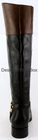 New/ store display (slight scratches on left outsole) without box Leather upper; Man-made lining; Leather sole; Rubber outsole Stacked heel measures 1 3/8"; Boot shaft 15 7/8"; Calf circumference 14" * Decorative gold tone logo medallion with harness and straps Side zipper with hidden elastic goring for easy on/off Rounded toe *Measurements are hand taken for every item we sell. Every item is carefully inspected to ensure that you receive a quality product. Designer Shoe Box guarantees this product is 100% Authentic
