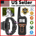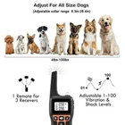 3280 FT Remote Dog Shock Training Collar Rechargeable Waterproof LCD Pet Trainer -- Built-in rechargeable lithium battery saves you the trouble of replacing batteries frequently, Dog collar with digital automatic code memory function, will not be affected by similar products of neighbors interference, The item provides 4 kinds of working modes: static shock, vibration, beep and light. Rechargeable Electric Automatic Adjustable 3 or 4 Working Modes 3280 FT or 1000m Remote Control Dog Shock Training Collar IPX7 Waterproof LCD Screen Pet Trainer with 1/2/3 Collars for Your Choosing eBay 3280 FT Remote Dog Shock Training Collar Rechargeable Waterproof LCD Pet Trainer Brand New High Quality - IP67 depth waterproof remote control dog training collar, the receiver is equipped with silicone conductive column more secure, remote control distance of 2700 Feet. remote control function keys separately need what function directly button, easy to operate. Receiver IP67 degree waterproof, high quality TPU material, your dog can swim in the water or take a bath with it. Not advised to submerge in water. Blue LCD screen can display all instructions. Remote control distance about 2700 Feet. Built-in rechargeable lithium battery saves you the trouble of replacing batteries frequently. Dog collar with digital automatic code memory function, will not be affected by similar products of neighbors interference. The item provides 4 kinds of working modes: static shock, vibration, beep and light. We do sell 1/2/3 Dog Collar Training Pack for longer range version of up to 2725 Feet. Please see our other listings for a longer range version. Specifications: Color:Black Collar + Black/Yellow Receiver Material: Pet Safe Adjustable Soft PU Collar + PE Remote Dimensions: Collar - 3.93" - 29.5", Remote: 5.6" x 1.89" Modes: 4 Modes, LED Light, Shock, Tone, Vibration. Waterproof with Soft Touch Points - IP67 2700 FEET Maximum Range For This Model. For Training Use 1 Collar with Receiver + 1 Transmitter Frequency: 915Mhz Transmitter: 3.7V 300mAh LIP Receiver: 3.7V 300mah LIP LCD Display Support Features 1 Piece of Shock Collar Receivers with Soft Touch Points Unlike other receiver's metal touch points, this dog shock collar receivers' touch points are soft silicone, will not easily hurt the dog's skin during training; This dog training collar receiver could use to train dog in various water activities or in the rain. 4 Training Modes LED Light, Vibration, Shock and Sound mode are optional; LED light mode helps you to locate your dogs in the dark environment, at dusk, thick foggy condition; Vibration and static shock mode are adjustable from 0-99 levels; The Sound mode creates an audible warning. Note: Treat your dog as friends, we suggest that the static shock should always be your last choice when you use this remote training collar and DO NOT use static shock to train young dogs. Important Safety Measures Recommended: Please do not use this training collar on aggressive dogs. Only put the collar on when training for exercises. Avoid connecting this collar to a retraction leash. Avoid leaving the collar on our pet for more than 8 hours per day and continue to reposition the soft touch points on your pets neck every 1-2 hours. Always monitor and examine the contact area for signs of rash or sores. If you see any signs of rash or sores discontinue using the product until the skin has healed and readjust the collar to avoid any harm. Wash your pets neck area and contact points on a weekly basis, if your pets hair is too long it may cause the receiver to not function properly. Overnighting the collar on your pet MAY harm your pet, please do NOT put the collar on tight as it MAY harm your pet. When collar is active, always monitor your pets behavior for signs of impatience, rejection or other signs of discomfort. Always start with vibration or tone mode first as shock mode is recommended in emergency situations and not advised as a form of positive constructive behavior training. 4 Working Modes LED Light, Vibration, Shock and Sound mode are optional; LED light mode helps you to locate your dogs in the dark environment, at dusk, thick foggy condition; Vibration and static shock mode are adjustable from 0-99 levels; the Sound mode creates an audible warning; Note: Treat your dog as friends, we suggest that the static shock should always be your last choice when you use this remote training collar and DO NOT use static shock to train young dogs. For All Size Dogs Soft Dog Collar length is adjustable from 18cm to 70cm; it fits for medium / large dogs ( dog's weight is 20 lb or above). Kindly Reminding: our remote shock collar is designed for building a better internal communication between your dogs and you, not for punishing the dogs. Please treat animals in a friendly way Waterproof IP67 waterproof dog training collar receiver could use to train dog in various water activities; Unlike other receiver's metal touch points, dog shock collar receivers' touch points are soft silicone; Tips: 1) In order to protect your dog's skin, place the soft silicone points on the receivers and Leave some extra length (about 2 fingers width) when wears it on the dog's neck (Note: The transmitter is NOT waterproof), please note that it is not water resistant, it is waterproof, submerging under water or swimming can damage your receiver. Design and Functionality The remote distance is up to 2700 Feet for this version, easily train your dogs in the park or backyard, use this dog training collar to correct dogs' barking, walking, leash training, sitting, aggression, and other behavioral obedience; one remote transmitter can control up to 3 pieces of electronic collar receivers; Train your dogs under your control, not necessary to shout at your pet any longer. DO NOT put the collar on your pet too tight as it MAY harm your pet. Package includes: 1 x 3280 FT Remote Dog Shock Training Collar Rechargeable Waterproof LCD Pet Trainer 1 x Receiver 1 x Chargi
