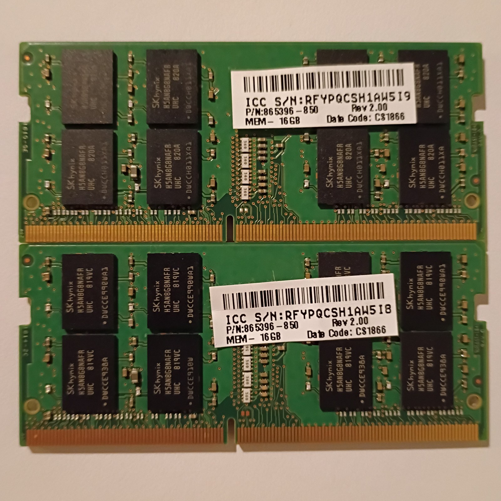32GB KIT [2x16GB] SK hynix PC4-2400T DDR4 2RX8 SODIMM Laptop Memory RAM Tested✅✅ Pulled from a working HP Elitebook HP 850 G4 Brand : SK hynix Total Capacity : 32GB (2 x 16GB) RAM Memory Technology : DDR4 Memory Speed : 2400 MHz *You will receive the same item as shown in the picture.* Please ensure compatibility with your laptop. If it uses DDR4, it will more than likely support this memory. SHIPS SAME OR NEXT DAY WITH TRACKING!