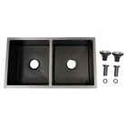 Specifications Material: 304 Stainless Steel, Rubber Color: Black Assembly Requirements: Yes Process: Brushed, Blackening Style: Modern Stainless Steel Thickness: 3mm/0.12in Number of Bowls: 2 Gross Weight: 12kg/26.46lbs Single-bowl Size: 36.83*40.64cm/14.5*16in Overall Product Size: 81.28*45.72*22.86cm/32*18*9in Pakage Size: 85*54*28cm/33.46*21.26*11.02in 32"x18'' Drop-in Double Bowl Basin Kitchen Sink Black With Filter Baskets Description Description This 304 stainless steel sink is made of high-quality material and adopts excellent brushed and blackening workmanship, making it hard-wearing and corrosion-resistant . Its enlarged and deepened 2 sinks not only reduce water splashing, but also increase the space for cleaning a lot of cookware. With it, you can enjoy a more convenient life. Key Features Build to Last: It is made of high-quality 304 stainless steel with brushed and blackening processes, s o it has good corrosion resistance , oxidation resistance an d strength. It can be used in wet environments such as the kitchen and laundry room. Large Capacity : You can put a large number of dishes in 2 bowls of 32*18*9 inches, making it more comfortable and efficient for you to clean. So it is a great helper for you to clean dishes or prepare food. Good Sealing : The connection between the downpipe and the drain is fitted with high-quality connectors and rubber seals, adding to its good sealing to avoid leaks. Separate Cleaning : 2 separate bowls are equipped with separate downpipes, so they can be used independently. You can wash different dishes and vegetables at the same time without interfering with each other. Effortless Cleaning: The stainless steel surface is brushed, so it is very smooth. Therefore, you only need to wipe it with a soft cloth to keep it neat and tidy. Easy to Assemble : The complete range of mounting parts and the simple construction of the product allow you to install it quickly and accurately in a short time. Thoughtful Design: We use high-quality stainless steel filters, which are corrosion-resistant a nd can be used for a long time. And it collects food and debris, preventing debris from clogging the pipes thus saying goodbye to unpleasant smells. It is equipped with an acoustic insulation system that includes a protective coating and an eco-friendly rubber mat that reduces the harsh sound of running water or the echo of falling cutlery. Modern and Simple: The low-key and luxurious black color, delicate connections, and smooth streamlines give this sink set a modern and simple appearance, which fits most household styles. Quality Service: We are honored that you have chosen our product. We have sufficient confidence in the quality of the product so that you can buy it confidently. But if you have any questions, you can contact our customer service, he will patiently answer and solve your problems. Details Thickened Panel: The 3mm thickened panel can provide better support and load-bearing force for the sink. X-shape Diversion Line: It can help guide and accelerate the water-flowing speed and keep the sink bowl dry and clean when not in use. Arcs Shape: The rounded and smooth edges not only add to the aesthetics of the product but also improve the safety of use. Application This product can be widely used in homes, restaurants, laundry rooms, basements, bars, kitchens, food trucks, dessert shops, coffee shops, hotels, garages, gardens, pet shops, etc. for cleaning tableware, vegetables, fruits, pets, etc. Specifications Material: 304 Stainless Steel, Rubber Color: Black Assembly Requirements: Yes Process: Brushed, Blackening Style: Modern Stainless Steel Thickness: 3mm/0.12in Number of Bowls: 2 Gross Weight: 12kg/26.46lbs Single-bowl Size: 36.83*40.64cm/14.5*16in Overall Product Size: 81.28*45.72*22.86cm/32*18*9in Pakage Size: 85*54*28cm/33.46*21.26*11.02in Package Included 1* 304 Stainless Steel Sink 2*Filter Baskets 2*Sealing Rings 2* Connection Hoses Notes Please check the size carefully before ordering. Please do not scratch its surface with sharp objects to obtain a longer service life. If you want to get a better installation result, we recommend that you hire a professional plumber to install it. Please allow the slight color difference caused by the shooting light and 1-3cm error due to manual measurement, and make sure you do not mind before you order. Payment Delivery details Terms of sales About us Contact us Payment We accept ebay payment 。 Fees such as import duties, taxes are not included in the item price or shipping costs. These charges are the buyer's responsibility. Delivery details Shipping: 2-9 working days to: USA Terms of sales We maintain high standards of excellence and strive for hundred percent customer satisfaction. Feedback is very important to us. We hope that you contact us immediately before you give neutral or negative feedback, so that we can address your concerns. It is impossible to address issues if we do not know about them! About us Your satis faction is our ultimate goal. We work hard to earn your trust and future business. Our certified technicians have tested each item before shipping. The unit comes with 1 year limited warranty on all manufacturing defects. a) If you receive a defective item, you may return it or ask for a discount. Please contact us within 14 days after you receive the package. b) What you returned must be intact and in its original packaging as re? u. Customer is responsible for shipping costs of the returned item. c) We will cover the cost of shipping back t with the shipping rate indicated in the registration page. We will send you a new unit or refund the full payment you paid. Thank you. Contact us Business Hour Business Hour: Monday To Friday: 8:30 AM to 5:00 PM (Beijing China time) Due to time zones, our reply to your questions may not be immediately. But within above working time, we will reply your email within 24 hours. If it's non-workdays, please kindly be patient and wait till Monday. P