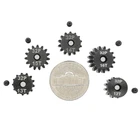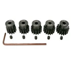 Are you looking for universal spares pinion gear for your RC car? We can help, we provide 1/8 inch hole 32p pinion gear set comes with set grub screws, they work well and have a secure fit with no modification needs. Package include: 1 X 32p 1/8inch 12T pinion gear 1 X 32p 1/8inch 13T pinion gear 1 X 32p 1/8inch 14T pinion gear 1 X 32p 1/8inch 15T pinion gear 1 X 32p 1/8inch 16T pinion gear 5 X Grub Screws 1 X Hex Key đĄ Make sure you thread lock the grub screw. They are hard to find when they fall out. đĄ Larger gears will result in higher speeds while smaller gears provide more torque. For quicker acceleration go for a smaller pinion gear (with fewer teeth) and larger spur gear (with more teeth). Your car will accelerate off the mark very quickly with more torque, and you'll also benefit from cooler running temperatures, extending the life of your motor and ESC. đĄHow to install the pinion gear: You will probably need to loosen the motor a bit, in order to fit the pinion gear on. Make sure you lock it in place on the flat portion of the motor shaft. When you are tightening it back up, make sure you leave about a gap between the pinion gear and the spur gear. That gap will be very small. It should be about the thickness of a piece of paper. At last, if the motor you are using has a 1/8 inch shaft with an 32p spur gear then it should fit... It's not about what vehicle you have necessarily... Let us make your RC happier! LOL ăWork SmoothlyăGood machining made less rough and less noise than other pinions that make them roll smoothly. ăPitch & Teethă 32P compatible with 0.8 metric (0.8M) pitch. 32P(32DP) is the pitch of each tooth on the pinion gear and the 12T 13T 14T 15T 16T is the number of teeth on the pinion gear. Please make sure your spur gear and pinion gear have the same pitch, or the teeth won't mesh. ăHardenedă32P pinion gear set is of hardened metal construction. Last longer life. ăFree StyleăThe speed depends on your gear ration. We provide five different teeth pinion gear to make you more choice in gear ration. ă5pcsăThe package included 32p 12T 13T 14T 15T 16T pinion gear and a hardened hex key.