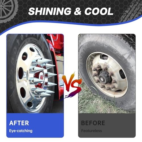 Return Policy Fast Delivery Trusted seller 60Pcs 32/33mm Semi Trucks Spike Lug Nuts Covers, ABS Chrome Plastic Anti-Rust Pointed Screw-on Wheel Nut Caps, Lug Nut Covers for Semi Trucks Trailer Product Description DURABLE HIGH QUALITY ABS PLASTIC: Crafted from premium ABS plastic, these lug nut covers are built to last. They are resistant to rust, corrosion, and harsh weather conditions, ensuring long-term durability and protection for your lug nut covers. PERFECT FIT FOR 32/33MM LUG NUTS: 1 1/4"(32mm)& 1 5/16"(33mm) lug nut covers fit most Volvo (VNL), Peterbilt, Kenworth, Mack, Western Star, Freightliner (Cascadia, Columbia, M2, FLD) Semi Trucks. Please measure and check the size of your lug nut covers before purchg. MAKE YOUR TRUCK SHINY: The chrome finish makes the lug nut covers like mirror and eyecatching , enhancing the look of your vehicle. Mirror surface is multi-coated: 1 layer of Nickel +1 layer of Copper +1 layer of Semi-Bright Nickel+1 layer of Bright Chrome. These semi truck lug nut covers give your truck a new cool look. PACKAGE LIST: 60pcs chrome lug nut covers (Each product is individually packaged to prevent scratching) & 2 reflective strips. The semi truck lug nut covers features a spiral design for easy installation and removal, use and maintenance in all applications. SATISFACTION GUARANTEE: We are committed to providing high-quality wheel accessories and exceptional customer service. If you have any questions or concerns about your lug nut covers, our team is ready to assist you within 24 hours, ensuring a satisfying solution for all your needs. Shipping Returns Payment Shipping Shipping is FREE to all addresses other than APO/PO boxes in the lower 48 states. All our stock ships from US-based warehouses. Shipped via USPS or UPS (depending on location and package weight) Unless stated otherwise, all orders will ship within 24-72 hours of your payment being processed. Check our feedback to see the great reviews of FAST shipping we offer. Returns Seller does not accept returns Payment We currently accept payment via eBay managed payments only. Once payment is cleared, we will dispatch your shipment within 1-3 business days. Please refer to the "Shipping" tab for more information regarding shipping speed to your destination.