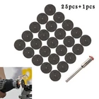 Grinding Wheels 26pcs/set 32mm Cutting Wheel Fiberglass Reinforced Mandrel DESCRIPTION Description : *The cut-off wheel is reinforced with fiberglass increased durability and used cutting metal including hardened steel *Great contractors and the home hobbyist *Great Fits for Craftsman Chicago and more. * cutting, grooving and trimming all kinds of metal *Also can be used on other materials-including thin wood, plastics and ceramics Specification : *Material:resin *Color: Black (As Pictures Show) *Disc Diameter: Approx. 32mm/1.26" *Disc Thickness: Approx. 1.2mm *Shank Diameter: Approx. 3mm(1/8" ) *Shank Length: Approx. 36mm *Quantity:26pcs/set Package Contents: 25*Cut Off Wheel Disc 1*Mandrel Note : *Plastics require very slow speeds, because they tend to melt at the touch point. Wood requires low speeds also, always experiment on a scrap . * The real color of the item may be slightly different from the pictures shown on website caused by many factors such as brightness of your monitor and light brightness. *Please allow slight manual measurement deviation the data. POLICES Shipping Payment WARRANTY We only ship to confirmed ebay Order addresses. Please comfirm that your Order address is in line with your shipping address. Please kindly note that the c ombined shipping is not provided because the shipping fee is calculated by weight. Also, the each additional item means exactly the the same color and size. It takes about 7 -15 working days to US; about 10-30 working days to other countries. Transit time may be a little delayed because of the bad weather and customs inspection . If you do not receive your item within 30 working days since payment finished, please contact us immediately for further assistance. Payment must be completed within 5 days. If you have any problems about payment, please contact us via ebay message. We strive for 100% customer satisfaction! Positive Feedback is very important to us. If you have any questions, p lease feel free to contact us via "Ask seller a question" . We will reply your email within 24 working hours. On Jul 9, 2025 at 05:57:06 PDT, seller added the following information:
