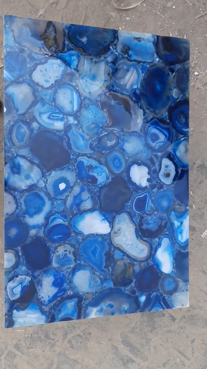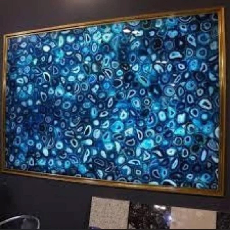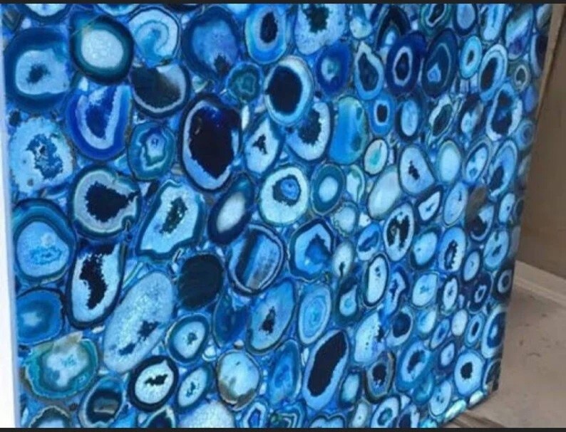 Welcome To Stone-Craft- Creations Shop Description Very unique Art by Indian Artist ,Coffee/Side Table top Used Material: Natural Agate Stones Arts Size: 32"x32" Inches Color: As Photo Shape: Round Pattern: Handmade Room: Bedroom, Dining Room, Hallway, Home Office/Study, Kid’s Bedroom, Kitchen, Laundry/Utility Room, Living Room,Patio, Playroom Packaging: Wood & Foam Export Packing Shipping: Air Can Be customize ,Please Message us your desired Size 1. It can be used as a Dining Table, Guest table, coffee table, center table top in show room as well as a gift for your loved ones. 2. The table top is made in Agra India & fully handmade. 3. The top will be delivered by FedEx or DHL free of cost door to door. 4. If there is any local tax,custom duties or Vat will be paid by the buyer at the destination. 5. The parcel is dispatch with proper packing & fully insured covering all kind of risk. 6. To maintain the table top is simple soap & water & dry cotton cloth. 7. If You Are Looking Something Customize, Let Us Know We Will Make For You As Per Your Design, Size & Shape. 8.Table top does not includes any wooden, marble stand or base if you like to buy marble or wooden base or stand that will be charged extra. Marble Agate Table Tops We are Manufacturer & Exporter of marble agate table tops. These marble agate table tops have different shapes like Round Table top, Octagonal Table Tops, Rectangle / Dining table tops, Square Table tops, Chess Table tops, Taj Mahal Table tops, Custom Designs Table tops also make marble Table top Base and Stand. Then we can be used as dining tables, coffee tables, Center tables, conference tables, chess boards, reading tables, bar tables , Garden table, side and corner tables or any other use as per the indoor and outdoor decor. They can also be placed outdoors in the garden, as marble is stain free, offers great resistance to the forces of nature, and can withstand heavy temperatures. We also meet customized requirement and offer our marble table tops at industry leading prices. About Agate Stone- Agate is a rock consisting primarily of cryptocrystalline silica, chiefly chalcedony, alternating with microgranular quartz. It is characterized by its fineness of grain and variety of color. Although agates may be found in various kinds of host rock, they are classically associated with volcanic rocks and can be common in certain metamorphic rocks. Ancient use of agate stone Agate is one of the most common materials used in the art of hardstone carving, and has been recovered at a number of ancient sites, indicating its widespread use in the ancient world; for example, archaeological recovery at the Knossos site on Crete illustrates its role in Bronze Age Minoan culture Types Of Agate 1. Fortification Agate This is the most common and distinctive type of agate. In these agates, bands crystallized into concentric layers that more or less follow the shape of the cavity. The banding resembles an aerial view of a fort 2. Water-Line Agate (also called water-level or onyx) During its formation, silica-rich solution either entered the cavity slowly laying one band at a time, excess water drained out leaving a small amount of silica to settle out into separate bands, or the vesicle filled under low pressure. In any case, the silica crystallization in water-level agates is controlled by gravity in one orientation, forming a stack up of parallel bands. 3. Shadow Agate Some agates exhibit a shadow effect in which there is what appears to be movement across the agate layers when the specimen is rocked back and forth (or your orientation to the specimen moves). This optical effect only occurs when there are alternating translucent and opaque bands. It is caused when light goes into the agate, but is not reflected out. 4. Tube Agate Tube Agate During the formation of some agates, parallel projections of tiny hair-thin mineral rods grow first within the silica gel, around which later the chalcedony agate micro-crystals form. In some cases the inclusions remain, but sometimes they weather away leaving hollow tubes that subsequently fill in with silica. 5. Eye Agates This mysterious agate characteristic is believed to be formed when most of the silica gel drains from the cavity, leaving only a droplet that “beads up” on the inside wall of the cavity. This droplet crystallizes into solid chalcedony “eyes”. In some cases, crystal growth will continue from this droplet in a manner similar to the formation of stalactites in caves. Later, the pocket fills in with the usual deposition of chalcedony microcrystals. 6. Plume Agate These agates initially had formations on their outside layer that formed prior to the deposition of chalcedony bands. They are filament growths of mineral inclusions that resemble ferns or feathers. 7. Geode Agate Geode Agate In some cases the supply of silica-rich water runs out before the entire cavity fills in. When there is a hollow center within a crystalline outer fill, the specimen is considered a geode. Not all geodes have agate banding, but many do. Also, the inner layers can form into several different types of silica mineral crystals and may even have other types of mineral crystals. 8. Moss Agate Moss Agate Moss agates have clusters of mineral inclusions that resemble plants, trees, or landscapes. Most moss agate inclusions are comprised of iron or manganese oxide. In some cases, the inclusions inhibit chalcedony banding allowing the mineral clusters free reign to grow within the silica gel. 9. Seam Agate Seam agates for in cracks within host rock, rather than in rounder pockets. The bands form in parallel rows that follow and fill in the crack or seam.
