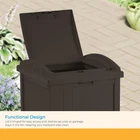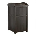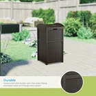 Keep unsightly garbage and recyclables safely out of view with the Trash Hideaway. The decorative yet functional design is compatible with standard 30-33 gal. garbage bags, ensuring ease of use. Plus, the unit features a stylish, contemporary design that will look great on any patio or deck and beautifully complements most furniture. Additionally, the Trash Hideaway includes a handy latching feature to help keep contents in and critters out. When it comes to cleanup, there's no better solution for your space. Outside trash can with lid has a built-to-last plastic construction that resists fading and keeps water out with its stay-dry exterior through any weather or season Large garbage can accommodates standard 30 to 33-gallon garbage bags; Ideal capacity for cleaning up after a party or gathering of family, friends, or guests Recycle bin has a lid that securely latches to the can ensuring garbage disposal is easy access and convenient for you but not accessible to curious animals Features both style and functionality with a wicker design that can match your outdoor decor and furniture which makes this an effective way for your garbage disposal Sturdy base ensures this outdoor trash can with lid won't easily tip over and create a mess in your backyard; Measures 15.75 inches long, 16 inches wide, and 31.63 inches high