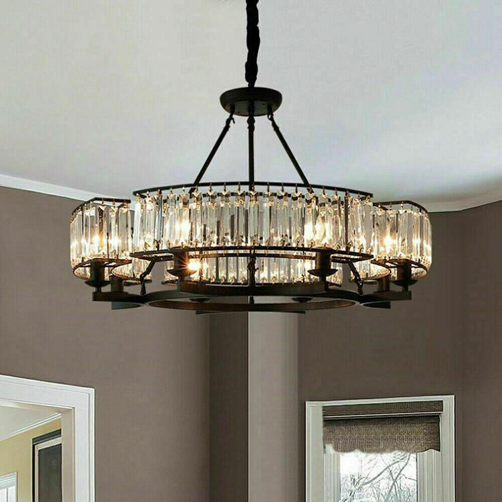 33.5" K9 Crystal Chandelier Black Luxury Ceiling Lamp 8-Lights Pendant Fixtures Features Type: Modern Crystal Ceiling Lamp Material: Metal, K9 Crystal. Color: Black Light Fixture Size After full installation:D85cm*H95cm/33.5"*37.4" Hanging chain length: 40cm/15.7" Light source type: 8 *E14 Bulbs(Bulbs not included) Voltage: 110V-220V An irradiation area: 15-25 square meters Applicable space: living room dining room bedroom bedroom small aisle meeting room small living room Package Included: 1* Crystal Ceiling Lamp About the project Crystal + metal, crystal chandelier, modern black crystal chandelier,LED lighting. PENDANT LIGHT FIXTURE DECORATION --Black flush mount light will be a nice antique lighting decoration gift for house remodel, housewarming, Valentine's Day, birthday, weddings, party, holiday decoration or other special events. FLUSH MOUNT LIGHT FIXTURE APPLICATION --Farmhouse light fixture is suitable for bedroom, beauty salon, dining room, living room, study room, bathroom, bookcase, hallway, balcony, porch, gazebo, etc. CLOSE TO CEILING LIGHT DESI Payment Delivery details Terms of sales About us Contact us Payment You could make payment via: Delivery details Packages will ship via by UPS or USPS within our handling time,once the package is shipped out ,normally shipping takes about 3-10 working days,but due to different cities and states,shipping time will be different. Terms of sales If you any problem about shipping information, or the item you got : Arrived damaged; Wrong item sent; Missing parts or pieces; Doesn't work or defective; Doesn't match description or photos. Pls click "Contact Seller" and send us message firstly. Then we could have a check and will take responsibility to resolve the problem with you in good communication. About us Our company specializing in selling all kinds of light fixtures,such as ceiling fans,chandeliers,crystal lights,retro lamps,pendant light,etc. If there's any light fixture you are interested,pls feel free to contact us for more details. Contact us Normally your message will be replied in 1 business day,If after 24 hours you do not receive our reply,please kindly re-send us the message,because sometimes ebay message system will have technical problem,so your message can't send to us successfully.
