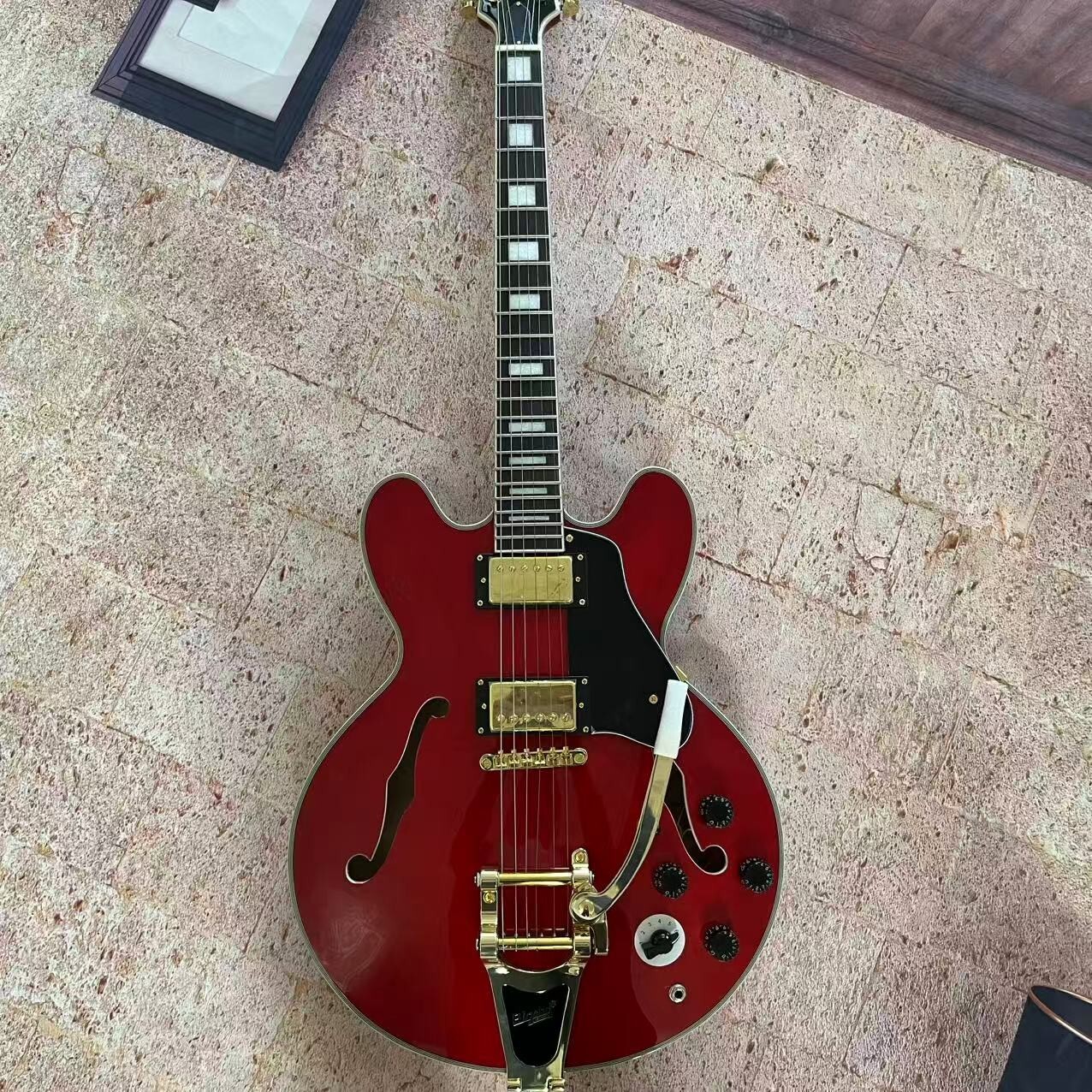 US Stock Jazz 335 Red Semi-Hollow Electric Guitar with White Binding Fast Delivery