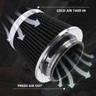 3"/3.5"/4" High Flow Inlet Dry Air Filter Cold Air Intake Cone Replacement Black SPECIFICATIONS: Type: Air Filter Material: Non-woven Fabric + Rubber + Metal Air Filter Type: Dry Air Filter Style: Round Tapered Air Filter Length (in.): 5" Air Filter Bottom Measurement: 6" Inlet Flange Inside Diameter (in.): Caliber:102mm(4")/ Caliber:89mm(3.5")/ Caliber:76mm(3") FEATURES: 100% Brand New and Never Used or Installed Increase horsepower, torque and improve the gas mileage. It universally fit for any 3inch/3.5inch/4inch air intake hose. The high flow air filter help engine to draw more cooler air resulting in betterthrottle response & higher explosive horsepower output. It comes with a washable and reusable cone air filter and a clamp. Filter consisted of 2 layers to double the filtration efficiency. [How often should air intake filter be replaced?] It should be inspected once a year or every 15,000 to 30,000 miles, but this can varybased on the car and driving environment. If you often drive through dusty terrain oron unpaved roads, you may need to change it more frequently. PACKAGE INCLUDE: 1 × Air Filter 1 × Clamp 2 × Rubber Ring Adapters All accessories in the picture are included. SHIPPING INFORMATION PAYMENT WARRANTY ABOUT US CONTACT US SHIPPING INFORMATION We will only ship this item to buyers by Normal Mail, please confirm your address is correct, and if you want to change the delivery address, just feel free to contact us when you purchase. Usually, we will ship the orders out and upload the tracking number within 1-2 business days(Monday to Saturday from 8:30am-5:30pm) after you complete the payment. PAYMENT We will only accept eBay payment. Please pay using eBay payment ONLY within 7 days from the date of transaction be made. WARRANTY Please inspect your order upon receipt.No damage claims will be honored after 14 days of delivery. All item we sold come with 90 days defective warranty from the date. ABOUT US We are a powerful factory producing auto parts,and we have a professional sales and after-sales team that can provide you with excellent products and services. CONTACT US For any reason you want to contact us,We aim at satisfying every visitor, no matter what kind of situation you meet with, we will be right here to serve you. Please contact our team. If you are happy with the transaction with us, leaving us an ALL-5-STAR positive feedback would be greatly appreciated. Have a good shopping.