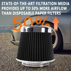 3"/3.5"/4" High Flow Inlet Dry Air Filter Cold Air Intake Cone Replacement Black SPECIFICATIONS: Type: Air Filter Material: Non-woven Fabric + Rubber + Metal Air Filter Type: Dry Air Filter Style: Round Tapered Air Filter Length (in.): 5" Air Filter Bottom Measurement: 6" Inlet Flange Inside Diameter (in.): Caliber:102mm(4")/ Caliber:89mm(3.5")/ Caliber:76mm(3") FEATURES: 100% Brand New and Never Used or Installed Increase horsepower, torque and improve the gas mileage. It universally fit for any 3inch/3.5inch/4inch air intake hose. The high flow air filter help engine to draw more cooler air resulting in betterthrottle response & higher explosive horsepower output. It comes with a washable and reusable cone air filter and a clamp. Filter consisted of 2 layers to double the filtration efficiency. [How often should air intake filter be replaced?] It should be inspected once a year or every 15,000 to 30,000 miles, but this can varybased on the car and driving environment. If you often drive through dusty terrain oron unpaved roads, you may need to change it more frequently. PACKAGE INCLUDE: 1 × Air Filter 1 × Clamp 2 × Rubber Ring Adapters All accessories in the picture are included. SHIPPING INFORMATION PAYMENT WARRANTY ABOUT US CONTACT US SHIPPING INFORMATION We will only ship this item to buyers by Normal Mail, please confirm your address is correct, and if you want to change the delivery address, just feel free to contact us when you purchase. Usually, we will ship the orders out and upload the tracking number within 1-2 business days(Monday to Saturday from 8:30am-5:30pm) after you complete the payment. PAYMENT We will only accept eBay payment. Please pay using eBay payment ONLY within 7 days from the date of transaction be made. WARRANTY Please inspect your order upon receipt.No damage claims will be honored after 14 days of delivery. All item we sold come with 90 days defective warranty from the date. ABOUT US We are a powerful factory producing auto parts,and we have a professional sales and after-sales team that can provide you with excellent products and services. CONTACT US For any reason you want to contact us,We aim at satisfying every visitor, no matter what kind of situation you meet with, we will be right here to serve you. Please contact our team. If you are happy with the transaction with us, leaving us an ALL-5-STAR positive feedback would be greatly appreciated. Have a good shopping.