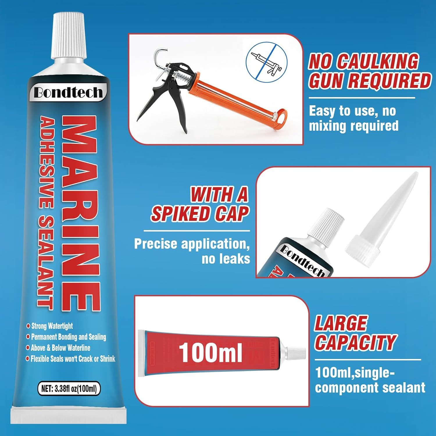Store New Arrivals Add to Favorite View Feedback Contact 3.38oz Marine Sealant White - High Strength, UV Resistant, Watertight Bonding Description Item model number CYMFJ-001 Compatible Material Plastic, Metal Color White Product Dimensions 1.57 x 1.38 x 6.3 inches; 4.97 ounces Material Silicone Country of Origin China Item Form Paste HIGH STRENGTH MARINE SEALANT: Bondtech marine adhesive is widely used for maintenance and repair of automobiles and ships, effectively sealing and waterproofing. The fully cured marine caulk is elastic and absorbs pressure from vibration, expansion, contraction and impact, maintaining a strong bond and seal even during vibration, structural movement or shock PERMANENT BONDING AND SEALING: Marine silicone sealant is a tough, flexible polyurethane that creates a strong, permanent bond with metals, glass, plastics, ceramics, and other materials for permanent bonding and sealing that withstands seawater, wind, weather, and extreme temperatures for long, worry-free fun on the water Wide range of applications: Our marine grade silicone sealant is suitable for through-hull and deck fittings and deck to Hull Joints,fiberglass and wood, molded trunk seams, between bracket:and decking, stern seams and hull decking, etc ABOVE & BELOW WATERLINE: Marine silicone suitable for seams, crash barriers, access panels and other areas shaded from the sun, the sealant resists salt water and weathering both above and below the waterline, eliminating the need to worry about the marine glue degrading due to sun exposure EASY TO USE: Marine sealant below waterline is designed with a hose that squeezes right out for use, so say goodbye to complicated tools and no need for a caulking gun. Our marine adhesive sealant has a medium consistency with a tip cap for easy control and precise application, and a 24-hour wait for full curing, making repairs a breeze Product Description ABOUT US We offer the best prices around on high quality products. Our E-store includes media such as books, movies, music and games while offering electronics, toys, sporting apparel, clothing, tools, general home, garden items and more. SHIPPING We are always working hard to ensure your package arrives as soon as possible. Please understand that some factors like weather, high postal traffic, and the performance of shipping companies are outside of our control. We offer free shipping to the lower 48 states and ship within 2 business days of payment, usually sooner. We do not accept P.O. Boxes. Please provide a physical address. For shipping outside of the continental USA, we only use eBay's Global Shipping Program.The item is shipped to KY and then sent to the rest of the world. International customers are responsible for all duties and taxes. Continue to check out in order to calculate costs for shipping the item to your country. Messages regarding eBay's Global Shipping Program MUST be directed at eBay EXCLUSIVELY. RETURNS We offer a 30-Day Return Policy on items which you are not completely satisfied with. You have the option for a full-refund or an exchange of the item. No returns are available on items shipped outside of the USA. PAYMENT We accept PayPal. CONTACT US This page content is yet to come Please ad us to your favorite seller and visit again later Thank You CUSTOMER SATISFACTION We try our very best to make sure every customer is completely satisfied. If there's a problem, message us! We're happy to help. WE ACCEPT Copyright © 2021 AutoDS. | All Rights Reserved
