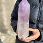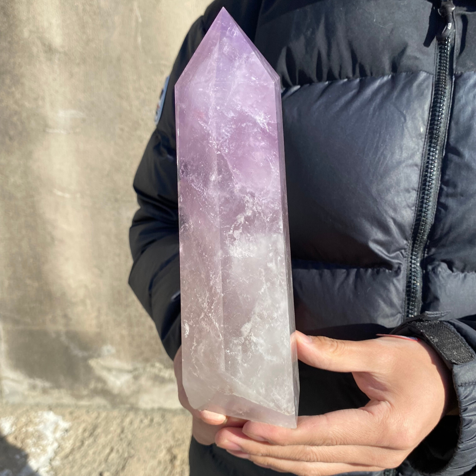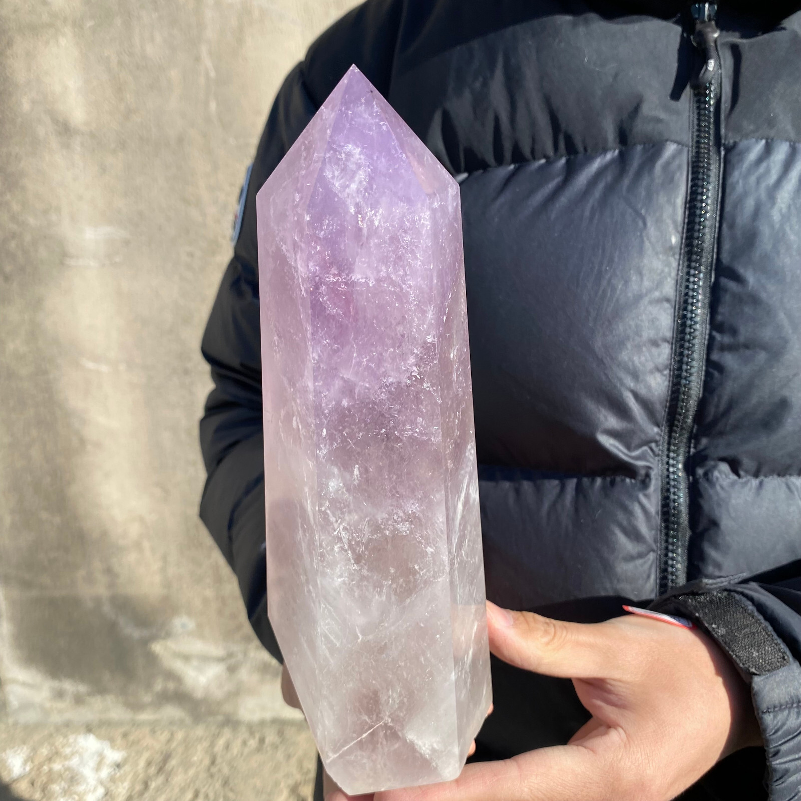 $ 73.921.3LB Natural Amethyst Obelisk Carved Quartz Crystal Wand for Reiki Healing and Decor