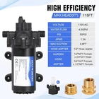 33-Series Industrial Water Pressure Pump 110V AC 50PSI RV Fresh Water Diaphragm Pump include Garden Hose Adapters for Irrigation Marine Boat Sprinkler Faucet Diaphragm Pump: 110V AC water diaphragm pump provides flow capacity. Turns on and off using water pressure at 50PSI, Max amps. AC power supply, no need to carry marine battery with you Smart Pressure Switch: Turns on and off on demand. It’s quiet, shuts itself off when the faucets are closed and runs when the faucets are opened. It also can adjust according to your needs, adjustable pressure range is 45-70PSI Reliable Performance: Self-Priming up to vertical feet, lift up to 148 feet. Thermal overload protection is built into the water pump to make it safe to use. When the temperature is above 70℃/ 158℉, it will automatically disconnect the circuit to protect the motor Multipurpose: The nemesis of low water pressure. Support continuous operation for more than 1 hour. The water transfer pump is suitable for many fields, like RV, Marine, Boat, Irrigation, Sprinkler, Faucet and so on Your First Choice: We always pay attention to customer shopping experience. If you have any doubts, you can always talk to us through the order form. We will always be here